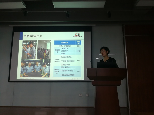 宣讲会由何有节院长主持。何院长代表院系欢迎德赛尔公司客人的光临,感谢公司为学院本科及研究生提供实习岗位,回顾了近几年学院皮革工程系轻化工程专业卓工班大三学生在德赛尔公司实习的情况,同时鼓励学生积极参加实习实践,全面提高自身综合能力。卢代虹助理经理介绍了公司的基本情况,龙进经理详细讲解了实习的主要内容和安排。据悉,本次德赛尔公司的暑期实习将吸纳NT动漫