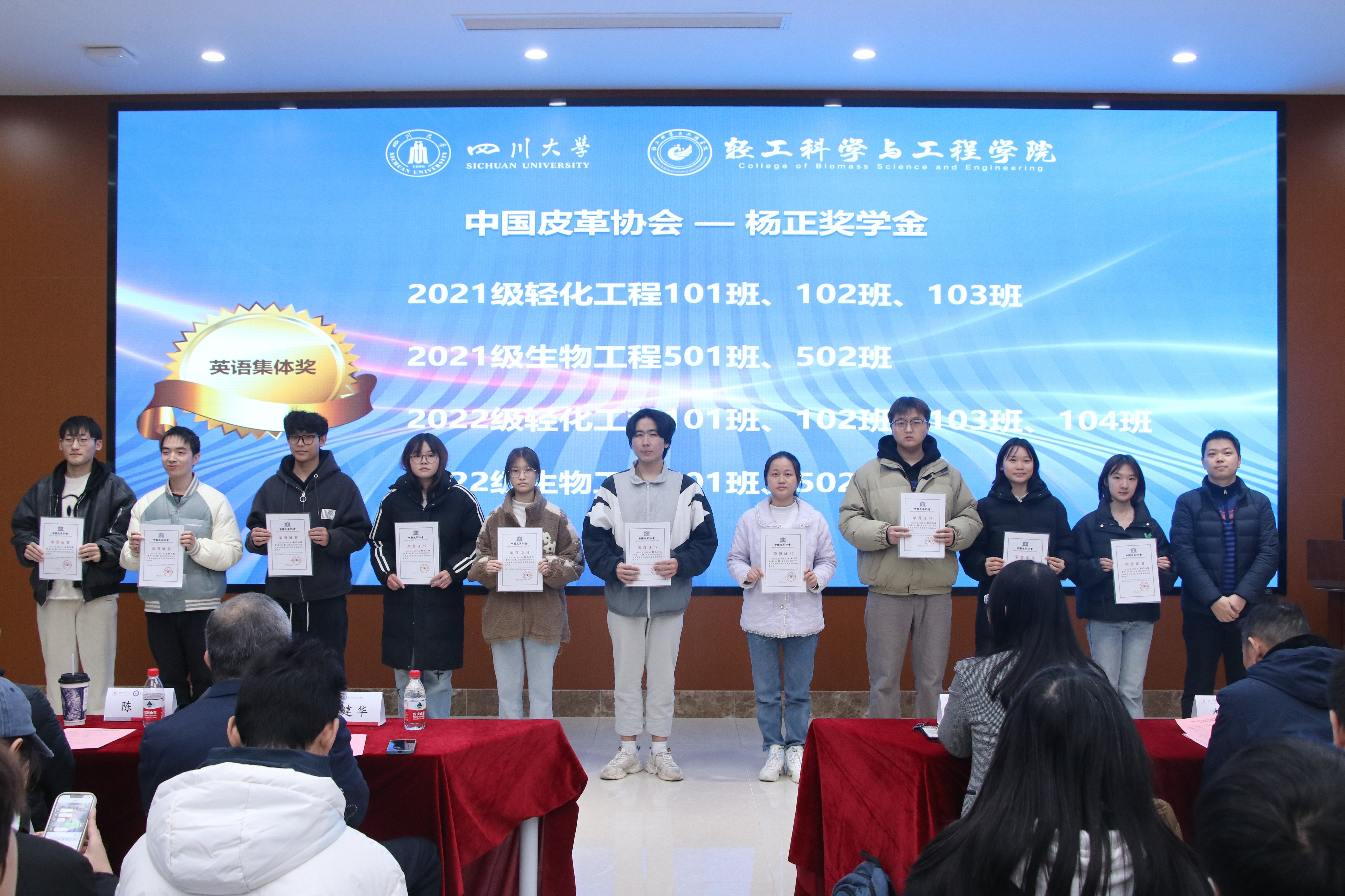 接着,生物质与皮革工程系副系主任程海明教授宣读《四川大学生物质与皮革工程系2024年度优秀个人及集体表彰决定》。在欢快并隆重的颁奖音乐中,设奖单位的嘉宾与学院的领导们为获奖同学逐一颁奖,并合影留念,共同记录下这一荣耀时刻�