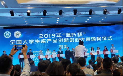 2019�9�25日,由教育部高等学校食品科学与工程类专业教学指导委员会、中国畜产品加工研究�、南京农业大学食品科技学院及广东温氏佳味食品有限公司联合主办的2019年“温氏杯”全国大学生畜产品创新创业大赛,在南京农业大学隆重举行。四川大学、浙江大学、中国海洋大学、江南大学、南京农业大学等三十多所高校的师生共四十三个作品参加了本次终审决赛。经过激烈的角逐,我院食品科学与工程专业段飞霞老师指导的“蛋蛋冻”产品研发团队在本次比赛中取得全国铜奖的佳绩�