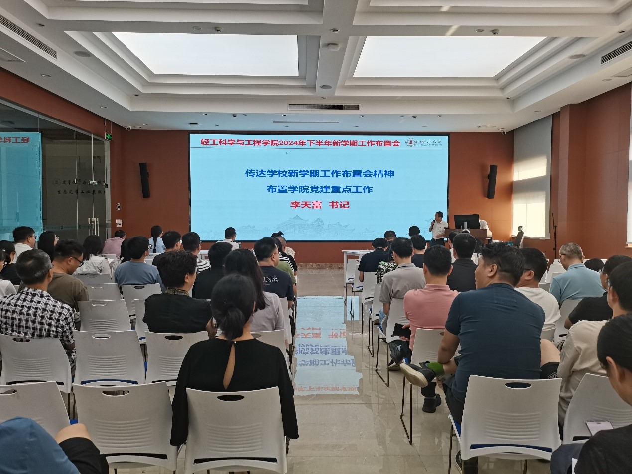 9月13日下午,我院在皮革楼工业互联网中心召开全院教职工大会,传达学习学校2024年新学期工作布置会精神,并安排部署本学期工作。会议由院党委副书记兼纪委书记冯国涛主持。