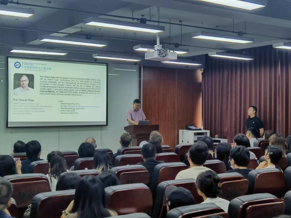2024年9月23-24日,我院成功举办生物质科学与工程论坛,芬兰科学院院士、加拿大国家首席科学家、英属哥伦比亚大学生物制品研究中心主任Orlando Rojas院士,苏黎世联邦理工学院、瑞士联邦材料科学与技术研究所、纤维素和木质材料重点实验室主任Gustav Nyström教授,阿联酋哈里发大学可持续材料重点实验室主任Blaise Tardy教授应我院郭俊凌教授邀请,在皮革楼215学术报告厅做了精彩报告,深入探讨了生物质材料发展所面临的机遇、挑战和未来的研究方向。