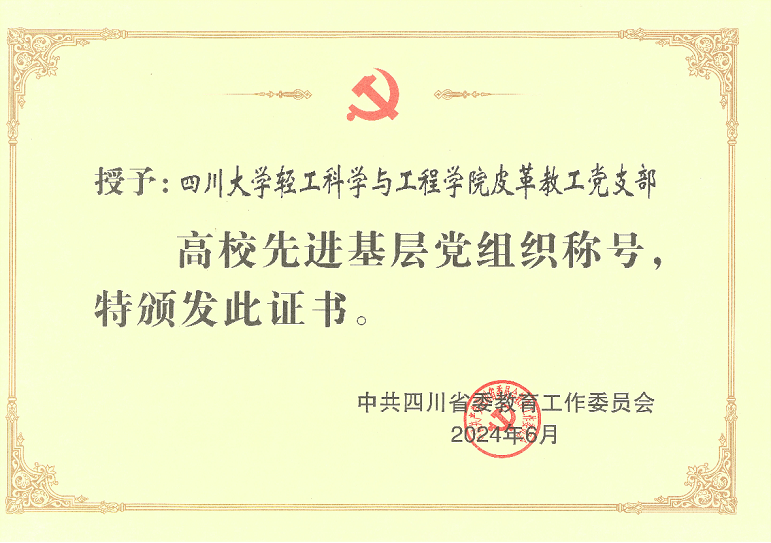 皮革教工党支部荣获四川省高校先进基层党组织称号。