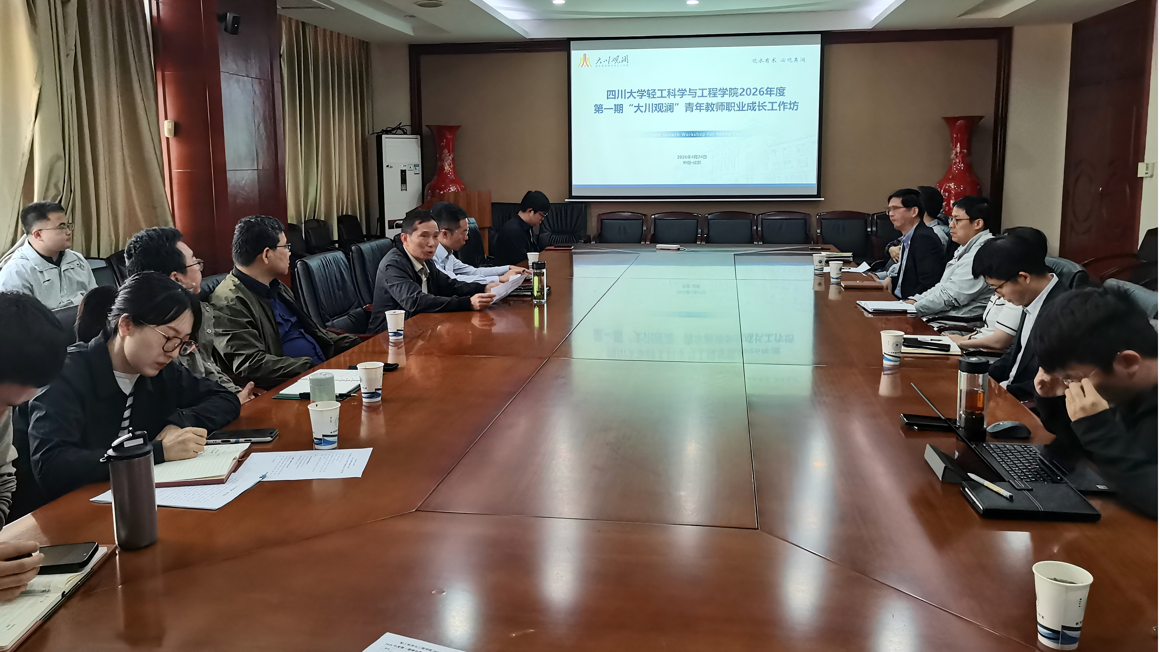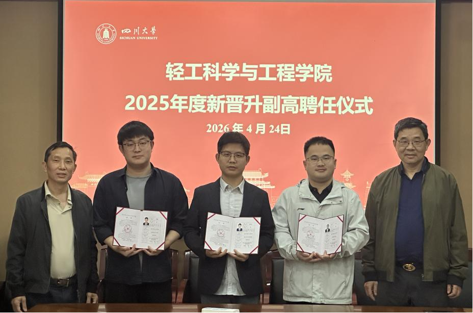 在皮革楼209会议室成功举办2025年度新晋升副高聘任仪式暨2026年度第一期“大川观澜”青年教师职业成长工作坊。学院班子成员、教授委员会代表、部分青年教师、人事处工作人员参会。学院党委李天富书记主持会议。
