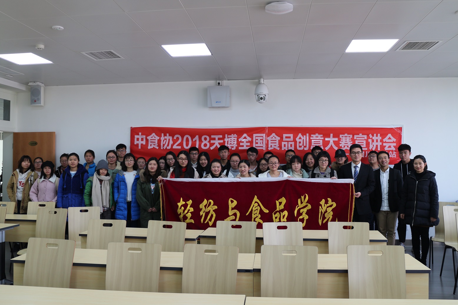 江安校区第一教学楼A座410教室顺利举办,到场嘉宾有山东天博食品配料有限公司市场经理、天博食品创意大赛负责人程林先生,NT动漫