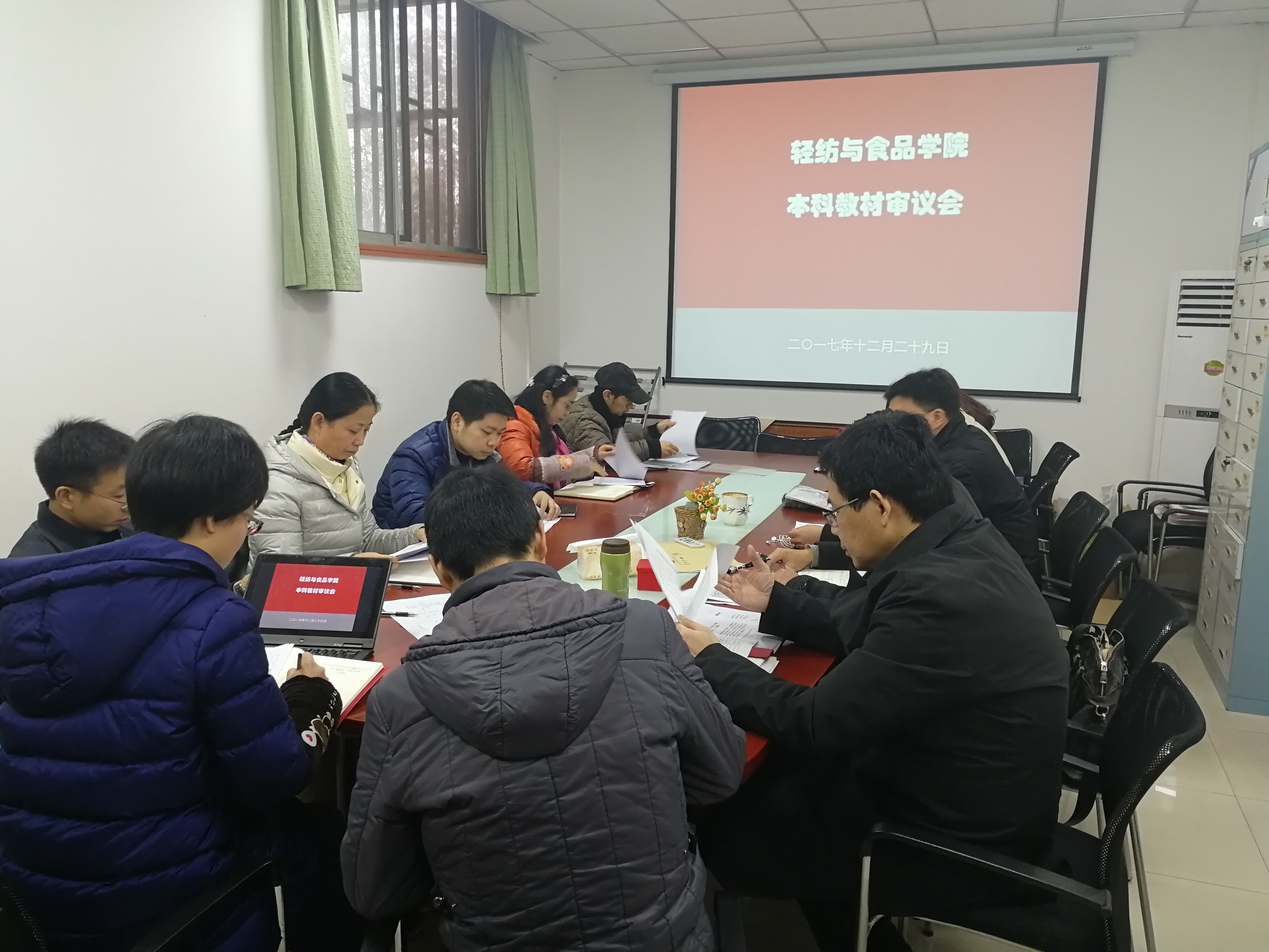 2017年12月29日上午11点,学院本科教材审议会议在纺工副楼201会议室召开。会议由教学副院长彭必雨教授主持,学院教材建设及选用审核工作组组长刘晓虎书记、何有节院长,成员冯国涛院党委副书记、各系系主任、副系主任、教研室主任出席了此次会议。会上,刘晓虎书记介绍了《轻纺与食品学院教材建设管理办法(草案)》,管理办法主要由组织机构、教材的选用和立项建设教材的评选推荐及管理三部分组成。并对教材提出三点要求,一是除实践课程外,课程必须有教材支撑;二是自编讲义使用年限不能超过两年;三是优先选用高水平教材。彭院长重点强调,加强对教材使用计划的审核,防止不符合教育教学要求的低水平教材或讲义进入课堂,杜绝有意识形态问题的教材和讲义进入课堂。何有节院长也鼓励教师们积极申报NT动漫