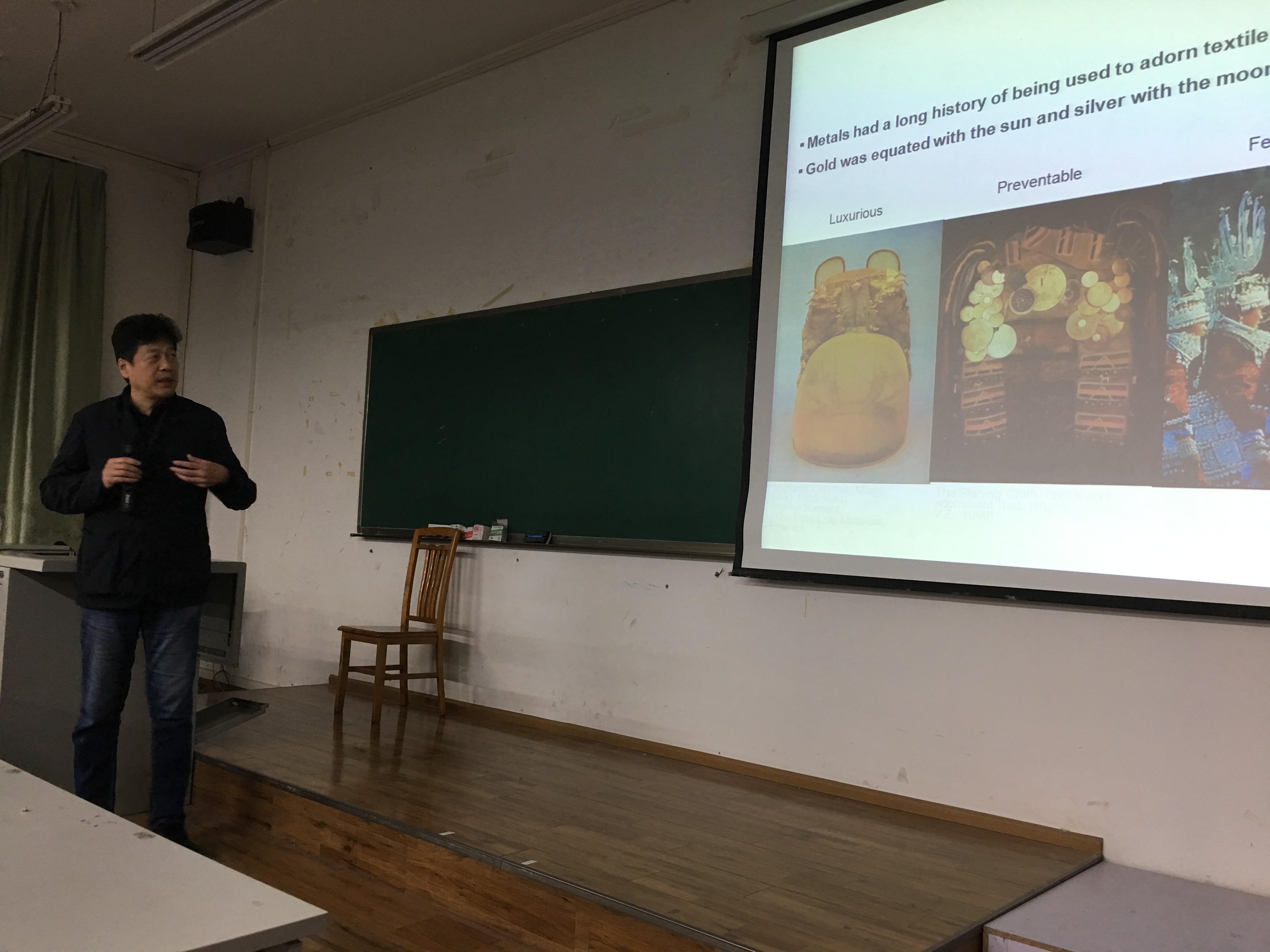 轻纺与食品学院纺织与工程系主任郭荣辉副教授主持并致欢迎词。纺织工程系及纺研所教师、本科生和研究生聆听了姜绶祥教授的精彩报告。姜绶祥教授主要从金属镀覆技术、金属镀覆纺织品的性能、设计应用等方面开展讲座,报告了他在金属镀覆纺织品绿色磁控溅射技术制备、性能及设计效果取得的最新研究成果。姜绶祥教授的报告幽默风趣,内容丰富,激起了老师们和学生的浓厚兴趣。师生踊跃发言提问,会后师生与姜绶祥教授进行了讨论交流。这次学生报告不仅丰富了我院师生的知识,也拓宽了我院师生的国际视野。 简历:姜绶祥博士,纺织及服装设计研究专家,香港理工大学纺织及制衣学系教授、博士生导师,纺织服装设计策展人,现为中国工艺美术学会会员,中国纤维艺术专业委员会常务理事,英国皇家艺术学会院士。研究工作涉及服装、家用和产业用织物的设计应用,传统和现代服饰研究。姜绶祥博士目前在物理与化学金属镀覆技术处理纤维材料开发功能和服饰设计应用上开展创新工作。研究成果获6项国家发明专利,发表SCI论文80余篇, 纺织创新、纤维艺术和纺织服装设计的作品在90多个展览中展出,曾与多位服装设计师合作参加国际服装展演活动,多件作品被维多利亚和阿尔伯特博物馆、中国丝绸博物馆及旧金山艺术博物馆收藏。