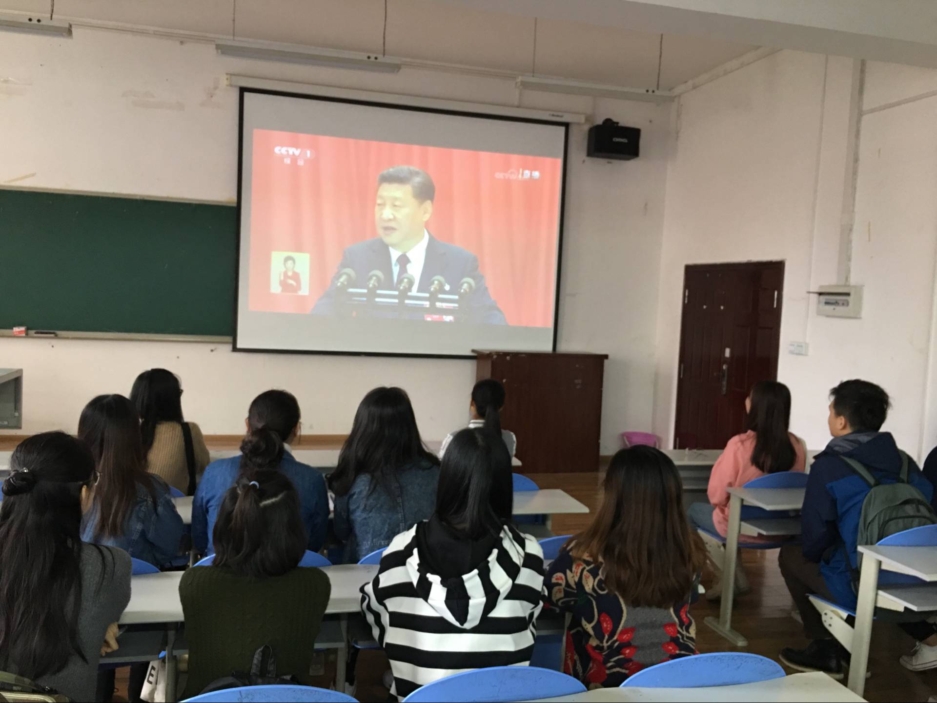 大一师生集体聆听、认真学习习近平总书记报告
