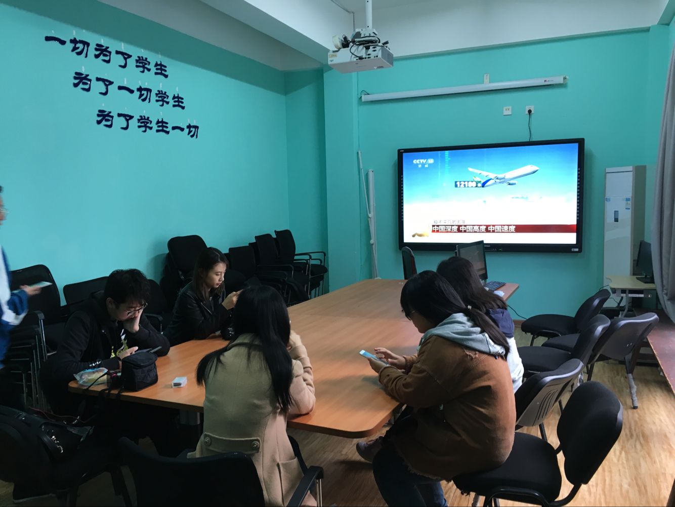 江安学生早早到活动室等待收看十九大开幕