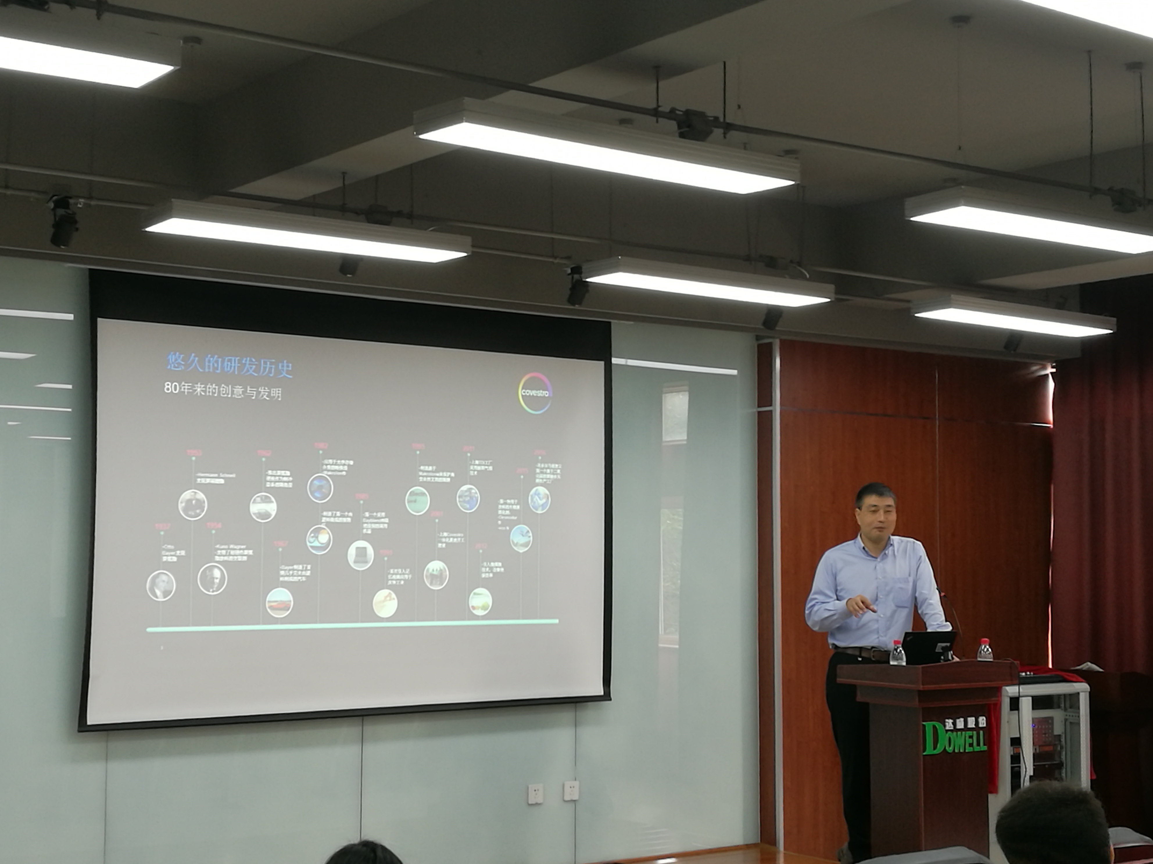 2017年10月16日,现任科思创聚合物(中国)有限公司应用开发部亚太区(涂料粘合剂及特殊化学品)副总裁李金旗先生受邀来我院进行学术技术交流,并在皮革楼二楼报告厅为研究生做了一场题为“聚氨酯技术进展及其应用”的精彩报告。报告会由林炜教授主持,轻纺与食品学院院长何有节教授介绍了李金旗先生的研究工作经历并致欢迎词。报告主要介绍了聚氨酯材料的合成方法原理、PU功能材料的特性及其广泛的应用现状,特别是我系师生感兴趣的PU在真皮革涂饰和合成革制造上的应用概况。会后青年教师和研究生与李总进行了讨论交流,并陪同参观了“NT动漫