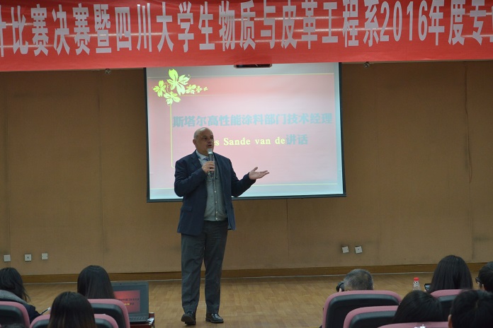 生物质与皮革工程系的邀请,中国皮革工业协会名誉理事长苏超英先生、德国司马化学(香港)有限公司皮革部中国区张建华经理、斯塔尔高性能涂料部门技术经理凯斯先生、斯塔尔广州技术服务中心高性能涂料实验室经理夏敏先生、斯塔尔广州实验室经理李艳女士、斯塔尔合成革应用技术专员李冠男女士、广州狮岭皮革皮具产业研究中心副主任罗杨先生、龙虹池干事参加了本次活动。出席本次颁奖典礼的学院领导有NT动漫
