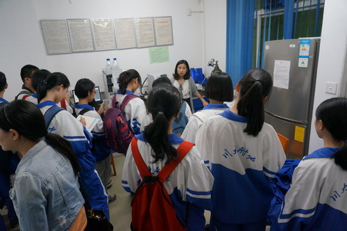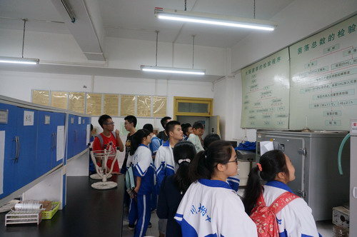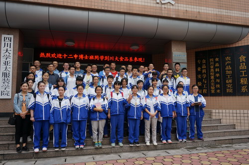 食品工程系迎来了成都十二中“博士班”高中二、三年级的80多位同学,同学们首先观看了我院的宣传片,随后食品工程系钟凯老师、李欣蔚老师、何贵萍老师带领大家参观了食品分析检测实验室、食品微生物学实验室、烘焙食品工艺学实验室、罐藏食品工艺学实验室等食品科学与工程专业本科教学实验室,并为大家讲解了食品相关知识,让大家对食品专业有了一定的了解和认识。