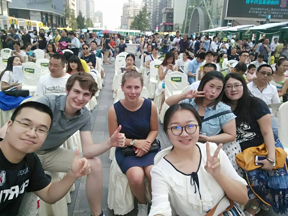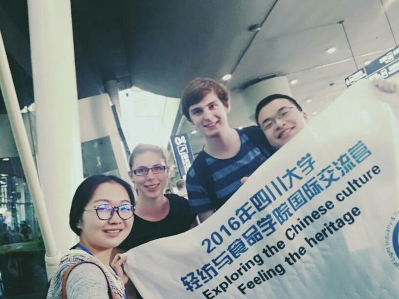 轻纺与食品学院国际交流营活动正式启动了,经过3天的交流互动,我院2013级和2014级的交流营志愿者同来自荷兰万豪劳伦斯坦应用科学大学(Van Hall Larenstein,University of Applied Sciences,The Netherlands)的2名同学产生了深厚的友谊,为接下来的交流打下了良好的基础。7月1日下午4点,在2013级徐弘毅、胡瑶两位同学的带领下,交流营员们从双流机场返回望江校区。期间2名荷兰同学跟随2名中国同学初步感受、了解了成都市以及学校周边的环境、景观,并尝试了一些本地小吃,然后在宾馆内好好休息,为第二天深入了解做准备。7月2日,在一群中国同学的陪伴下,2名荷兰同学游览了春熙路、大慈寺、太古里、盐市口、天府广场等成都市内具有标志性的景点,并到著名的“龙抄手”饭店品尝了各种经典的成都小吃。晚上7点,大家一起在一间公寓式水吧中玩游戏、畅饮、居高临下欣赏成都犹如纽约曼哈顿一般的夜景。随后大家环绕锦江欣赏廊桥、合江亭酒吧一条街的夜景,虽然累但快乐地结束了一天的行程。7月3日上午参观了望江公园,并且了解其来历、品味绿茶。下午便来到江安校区,途中欣赏了风景如画的江安河、长桥、明远湖等景点,然后与来自西班牙的同学以及其他诸多大二、大三的同学一起做游戏。冷餐会以后,便观看了NT动漫