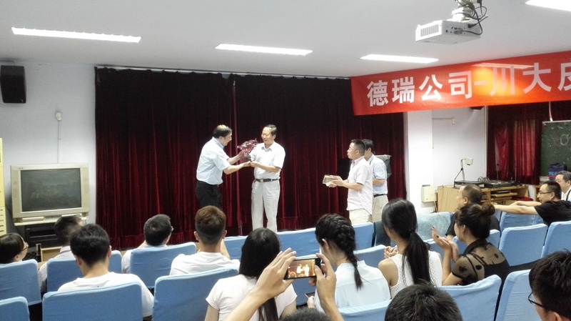 轻纺与食品学院院长何有节和德瑞公司销售经理姚兵校友主持。德瑞公司代表团、院长何有节教授、皮革系对外联络办公室主任周华龙教授、生物质与皮革工程系党支部书记程海明副教授、学院团委书记苏德强老师、团委副书记李晓秀老师以及轻化工程专业卓越工程师班的学生参与了本次活动。 何有节院长发表了热情洋溢的致辞。何院长首先代表学院向德瑞公司代表团的到访表示热烈的欢迎,他回顾了德瑞公司与川大皮革系的深厚友谊及在人才培养、技术开发方面的合作历程,重点介绍了德瑞公司在皮革环境友好材料开发应用方面所取得的成就,勉励参与课程的同学能在课程和联谊活动中珍惜难得的机会与德瑞公司代表团成员们积极互动。 德瑞公司销售副总裁徐怀海先生对德瑞公司以及皮革行业做了详细的介绍,强调了皮革行业的发展前景如何有节院长所说的“日不落产业”,认为德瑞的重心在于解决皮革行业所面临的现实问题。随后,德瑞公司技术总监周利军校友、高级技术代表何杰校友以“现代制革业的破局——时尚/环保与传统工艺的融合”为题,对德瑞公司在水场准备工段的解决方案做了详细的介绍,并与现场同学进行了热烈深入的交流互动。培训课程第一单元结束后,参与培训课程的师生利用茶歇时间在皮革楼209会议室参加了德瑞公司最新时尚皮革品种路演活动,并与德瑞代表团成员就感兴趣的皮革品种的制作工艺以及皮革化工材料使用情况进行了热烈的讨论。最后,德瑞代表团对皮革涂饰工艺进行了解析,并和参加培训会的同学对工艺细节进行了讨论,整个过程气氛热烈。活动结束后,德瑞代表团和轻纺与食品学院生物质与皮革工程系互赠了礼物。所有参与培训会的师生和代表团成员们参与了后续的联谊活动。 德瑞(TFL)—NT动漫
