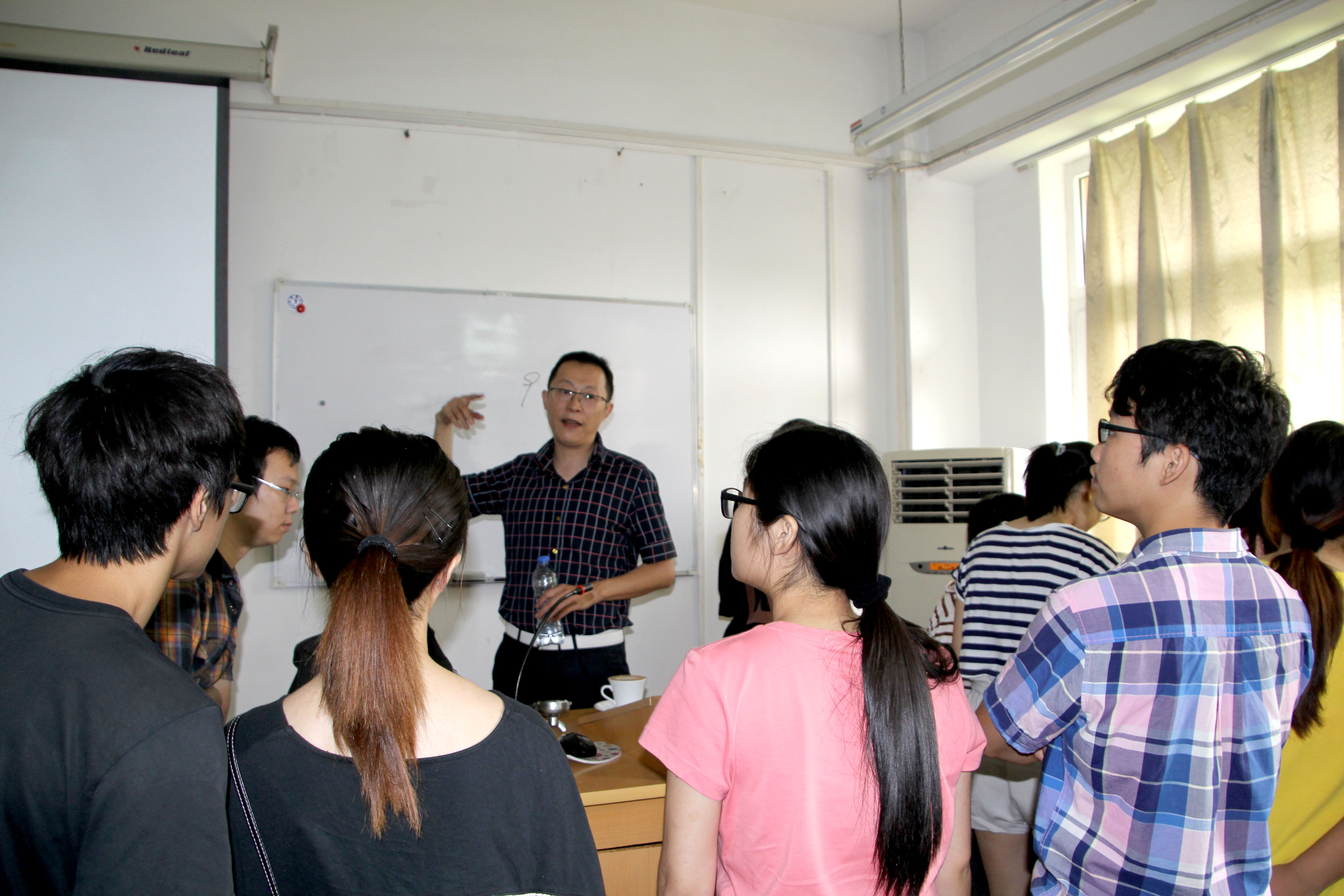 纺工楼A202正式开课。中国咖啡联盟书记长、咖啡技术学会理事长、国际WBC咖啡师比赛评委、高级咖啡讲师汪凯先生及其助手,为我校食品科学与工程、化学和华西口腔的同学们带来了妙趣横生的课程。