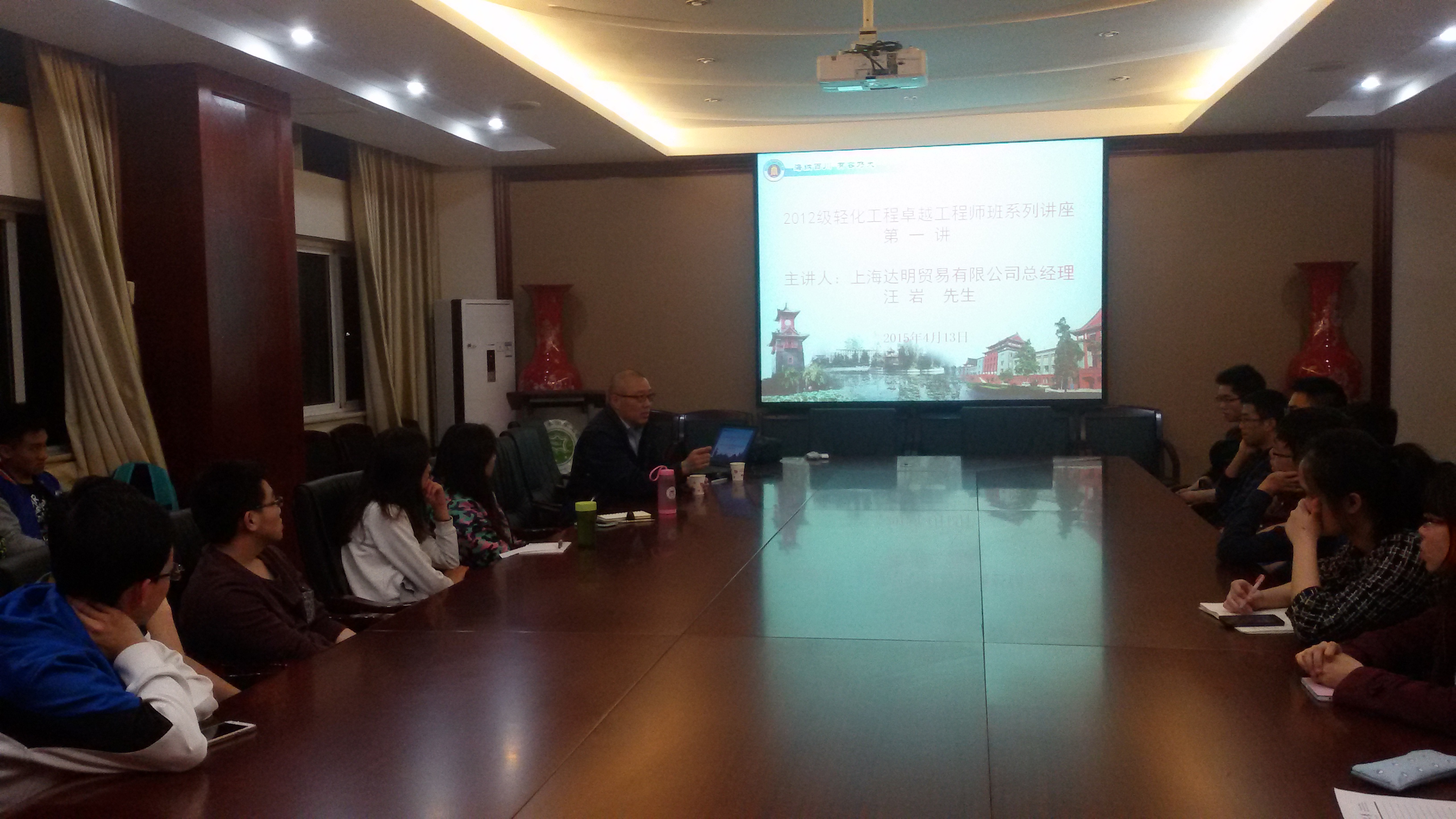万门课程之一“轻化工程卓越计划专题讲座”开讲,4月13日和17日开讲了两次讲座。2012级轻化工程专业达威卓越工程师班的同学参加了相关的活动.