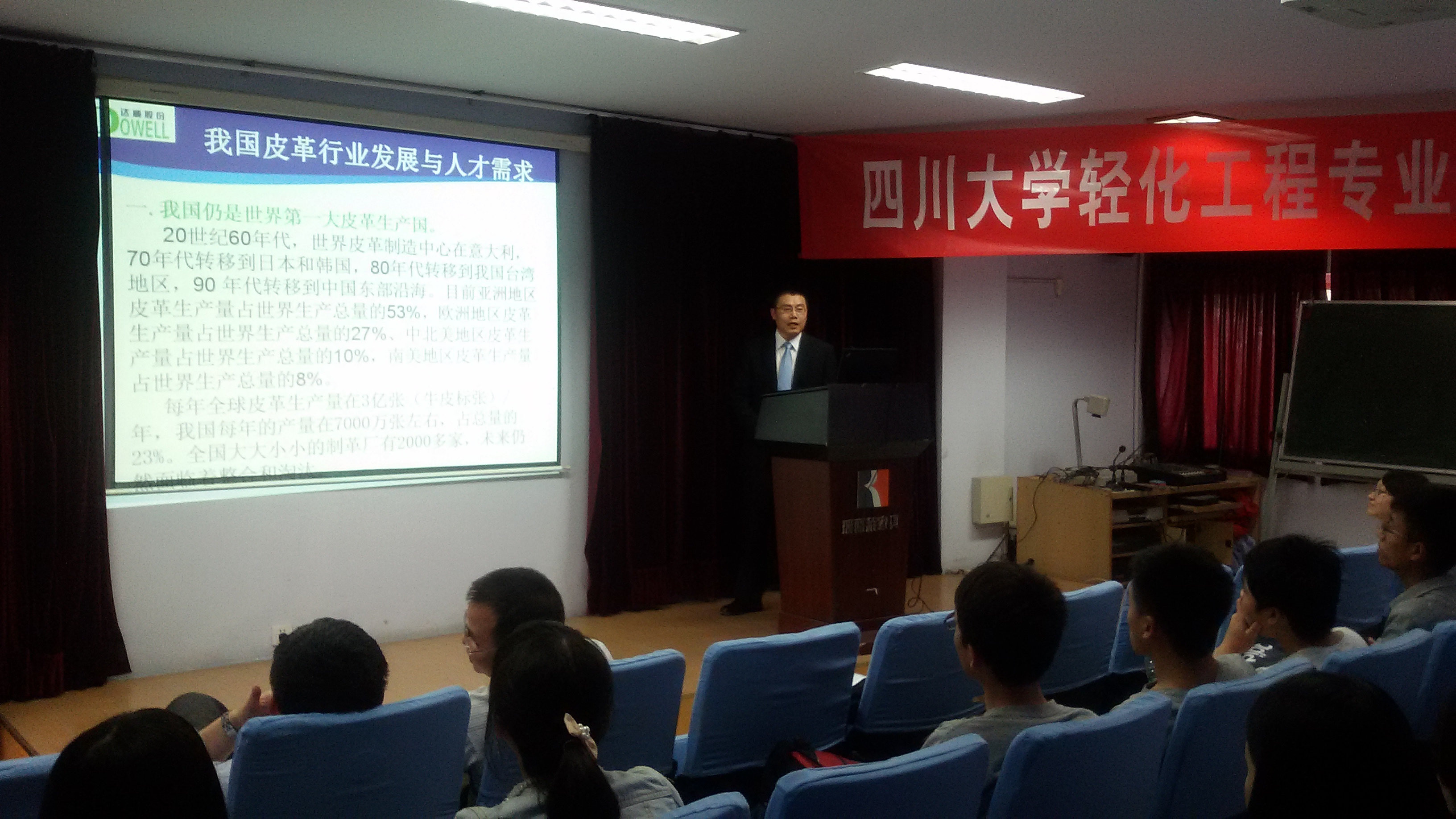 万门课程之一“轻化工程卓越计划专题讲座”是由国内外企业的技术专家、管理干部、营销专家、董事长(总经理)、HR及行业主管部门领导为同学们开设轻化工程专业“卓越计划”专题讲座,介绍最新的行业发展动态、新的材料、新的制革、毛皮及制鞋加工工艺、职业规划、管理经验等,可拓宽学生的知识面,了解行业、了解企业,了解行业发展现状,培养学生的综合能力和适应社会的能力,为创新和科研实践、就业打下基础。这门课也是川大轻化工程专业“卓越工程师教育培养计划”的课程之一。