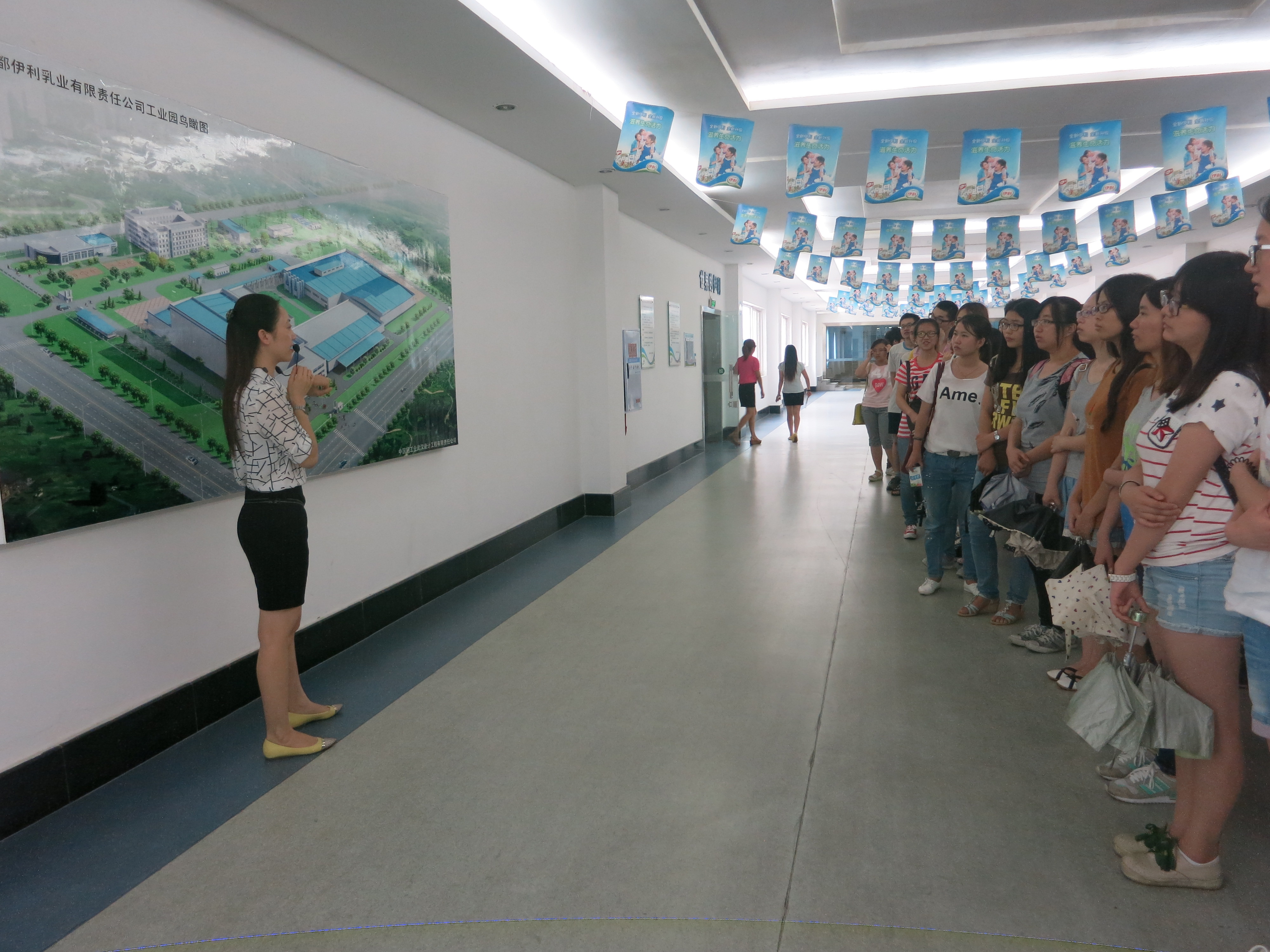 轻纺与食品学院2012级食品科学与工程专业师生一行90余人,经过一个半小时的车程来到了成都伊利乳业有限责任公司,在陈经理的接待下参观了该公司工业园内的生产环境和加工过程。成都伊利乳业有限责任公司是内蒙古伊利实业集团股份有限公司的全资控股子公司,始建于1983年,原名是呼和浩特回民奶食品总厂,于1993年更名为伊利乳业有限责任公司,而成都伊利乳业有限责任公司投建与2006年,2008年正式投入使用,位于邛崃市工业集中发展区,地处国内经济社会发展最具活力和带动力的西南区域,辐射以成都为中心半径范围内的重庆、陕西、贵州、云南大量发达的省市,主要从事液态奶、酸奶、奶粉和冰淇淋等产品的开发、生产和销售,是伊利集团在西南地区建设的第一个生产基地,也是目前西南区最大的乳制品生产加工基地。在陈经理的带领下,我们进入了参观通道,陈经理向师生们简单介绍了公司的近况,并告知了我们接下来的参观流程:水处理车间→液态奶→液态奶包装车间→冰淇淋制作加工车间。首先,伊利“老铁匠的生命链条”寓言所展示的严格质量要求与信念,深深地让我们食品人所折服,目前市场能够排除利益把质量安全放在第一位的又有几人,其次,咱们伊利还提倡“老鹰新生”的创新改良观,伊利不仅有天时地利,伊利三大黄金奶源:呼伦贝尔、锡林郭勒、新疆天山,还拥有符合国家民族发展观的NT动漫和独到的生产加工工艺。市面上的伊利产品很多,做一个横向对比,则不得不感叹伊利的市场份额所占比例是多么的大,例如伊利巧乐兹,比起市场同类产品,其所占市场份额遥遥领先,年销售额高达18个亿。紧接着,陈经理带领我们师生参观了乳业生产的各车间,包括酸奶前处理车间、中控间、液奶灌装间、液态奶包装间、液态奶瓶装间等。在乳业园后场,我们看到了成都伊利的污水处理中心、收奶区、采样区和冷饮物流,以及位于绿化带后的员工生活区。陈经理细致耐心地为我们讲解关于成都伊利乳业园内的一切运转,使我们全体师生获益匪浅。参观完后,伊利邀请我们全体师生品尝了伊利的产品——冰工厂冰淇淋,带给了我们炎炎夏日的丝丝甜蜜和凉爽,在此表示衷心的感谢。最后,我们和陈经理一起在成都伊利大楼前拍了合影,结束了本次实习参观的行程。