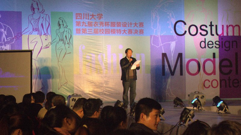 江安校区青春广场如期举行,并邀请了我院党委书记赵毅书记、院长何有节教授、党委副书记刘晓虎副教授、肖凯副院长、校团委社团工作部部长林茂老师、学生科科长冯国涛老师、院团委书记苏德强老师、团委副书记贺婷老师、2012级辅导员王舒灏老师、2013级辅导员高江帆老师、纺织与服装工程系冯洁老师、王巍老师作为到场嘉宾。本次大赛的评委有东华大学服装学院博士生导师张文斌教授,四川师范大学服装学院名誉院长、中国十佳设计师张晓黎教授,成都纺织高等专科学校服装学院院长阳川副教授,NT动漫
