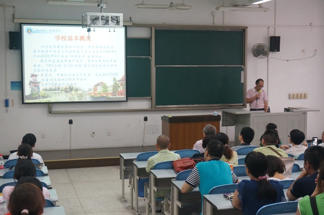 赵毅书记发表了热情洋溢的致辞。赵书记首先代表学院党政对考入我院的2014级本科新生和前来的家长表示热烈的欢迎,对新生未来四年的大学学习和生活给予寄予了良好的祝愿,同时对家长们送去了中秋佳节的节日祝福。何强副院长就学校以及学院的基本情况进行了介绍,并从五个方面重点解答了家长们较为关心的问题。党委副书记刘晓虎副教授详细介绍了学校办学方向和办学模式,特别就学校“323+X”创新人才培养计划及学分制制度进行了深入的阐述,并从管理服务的角度介绍了我院的管理服务思路及成效。