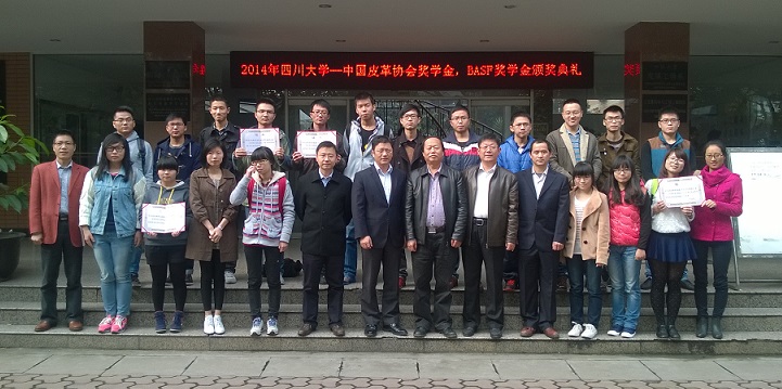 -中国皮革协会、BASF奖学金颁奖典礼暨学术讲座在皮革楼二楼报告厅顺利举行。参加本次颁奖典礼的有中国皮革协会常务副秘书长陈占光先生,BASF公司皮革部东亚区总经理喻焯先生,皮革部技术服务经理项超先生以及轻纺与食品学院党委书记赵毅先生,学院院长、生物质与皮革工程系系主任何有节教授。到场的还有全体获奖同学、2012级轻化工程专业本科生,颁奖典礼由生物质与皮革工程系党支部书记程海明副教授主持。