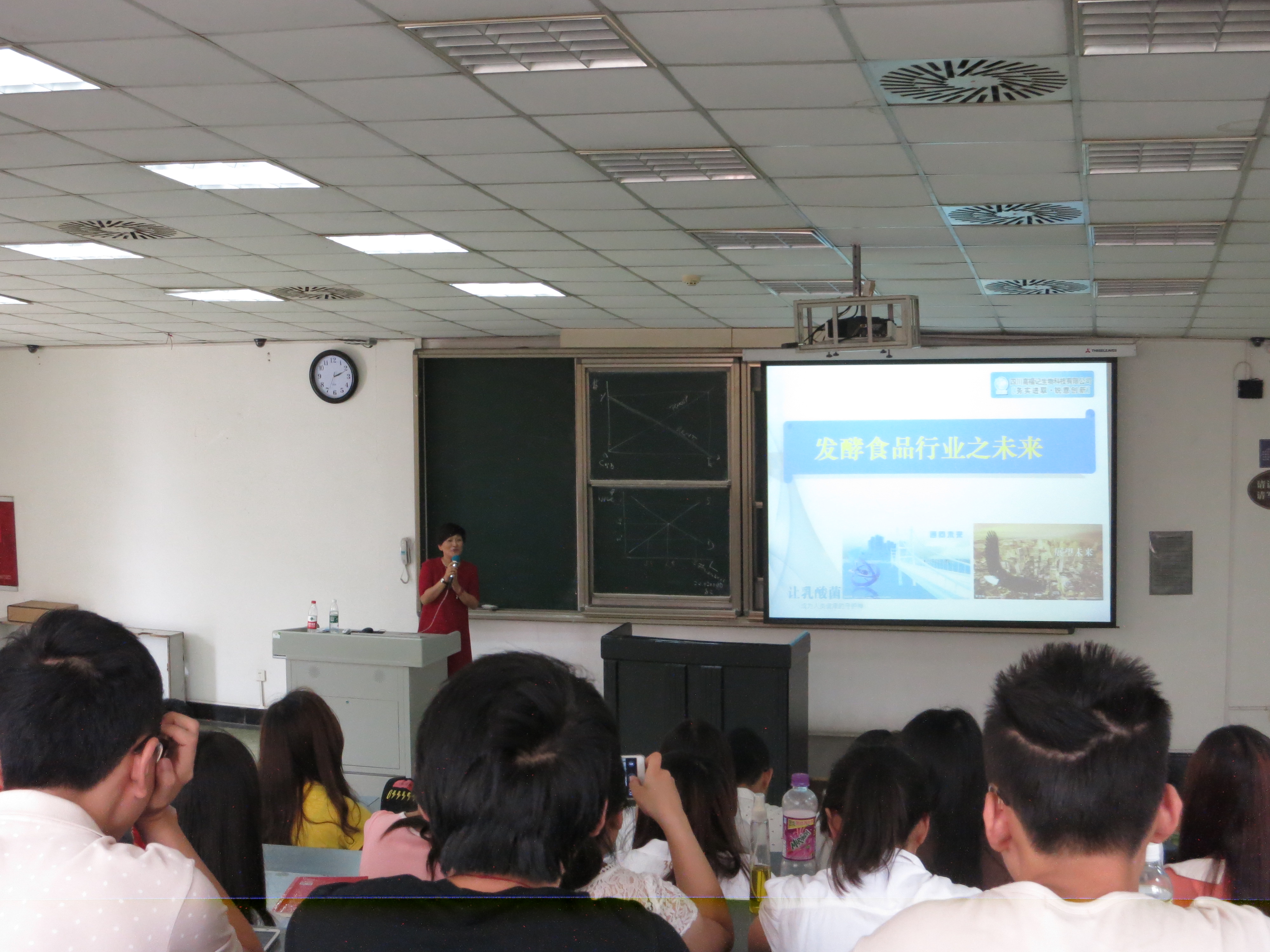 望江校区基教楼C座104教室举行。本次讲座邀请到高福记食品有限公司、高福记生物科技有限公司董事长高银江女士作为主讲,轻纺与食品学院贾利蓉副教授主持了本次讲座。 下午两点整,讲座正式拉开序幕。首先,贾利蓉副教授为大家隆重介绍了本次讲座的主讲嘉宾高银江董事长。在同学们的热烈掌声中,高银江董事长走上讲台,以酱腌菜也就是我们俗称的泡菜为例,就中国发酵行业以及食品行业的现状及问题做了具体的分析。高董事长表示,传统的酱腌菜发酵过程中产生的毒素、所加入的食品添加剂以及制作过程的不规范化,让酱腌菜在国外饱受争议,甚至被列入了垃圾食品的行列。作为一名中国人,自己传统的食品在社会上不受认可的现实,让高董事长深感惋惜,并也因此鞭策着自己要研制出一种对人体健康、对环境可持续的中国传统食品发展的道路。讲座过程中,高董事长不断激励、启发在场同学用自己所学为中国食品行业的未来作出应有的贡献。并且以稻盛和夫定律:人生成果=价值观(55%)+激情(30%)+能力(15%)来告诉大家,树立正确的价值观,用自己持之以恒的激情来创造自己的成功。最后,现场同学积极地就自己学习过程中的问题以及对食品专业的前景问题与高银江董事长进行了探讨,讲座在热烈的气氛中圆满结束。 作为成都市人大代表、中国发酵行业的领头人,高银江董事长以她强烈的社会责任感、不断求索的创新精神,赢得了在场同学钦佩。通过这次讲座,也让在场同学对自己的行业前景有了更深的了解,对自己肩上的责任、对自己未来的使命有了更明确的认知。