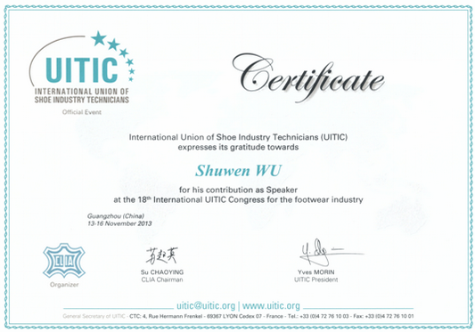 2013年11月13日至11月16日,第十八届国际鞋业技术大会(18thInternational Technical Footwear Congress)在广东省广州市举行,这是UITIC会议第一次在亚洲举行。我校轻纺与食品学院革制品方向杨璐铭副教授及2012级研究生郝芙蓉和2013级研究生伍舒闻参加了本次会议。伍舒闻同学在大会上做了题为“The Applied Research on User Experience Design Concept in Sneakers Design”(用户体验式设计理念在运动鞋设计中的应用研究)的报告,报告内容获得了国内外行业专家的一致赞誉。 背景:国际鞋业技术大会(International Technical Footwear Congress)由国际鞋业技师联合会(International Union of Shoe Industry Technicians,简称UITIC)授权,中国皮革协会主办。国际鞋业技师联合会(UITIC)成立于1972年,是一个致力于推动全球鞋业技术发展的国际组织。它的会员来自于世界27个国家和地区的协会、研究机构、私人公司及鞋业专家。国际鞋业技术大会是国际鞋业技师联合会的官方活动,是世界鞋业技术领域的峰会,来自国内外300余位鞋业界的管理者、鞋业技术工作者参加了会议,其中近百位来自海外。大会原则上每两年举办一届。多年来,该大会为推动世界鞋业技术进步和管理创新,推动制鞋行业整体发展做出了卓有成效的努力。 (YLM)