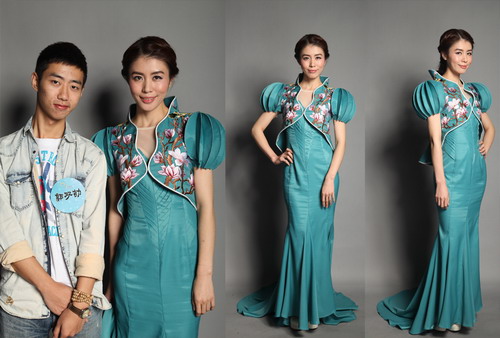 郭双劼在现代装设计环节接到的任务是为演员刘晓庆设计一款出席百花奖电影节的红毯礼服。在时昱老师和王巍老师的指导下,经过一个月的精心设计和制作,以一款大方、时尚、优雅的墨绿色礼服赢得了观众的视线;该套礼服上装饰了具有四川特色的、精细制作的白玉兰元素蜀绣;另外,考虑到穿戴者的出席场合,采用两件套的设计增加了礼服的多穿性和舒适度。演员刘晓庆对该套服装表达了极大的赞许,并说:“我去参加晚宴的时候一定会穿它”。据悉,该套服装目前已被刘晓庆收藏。