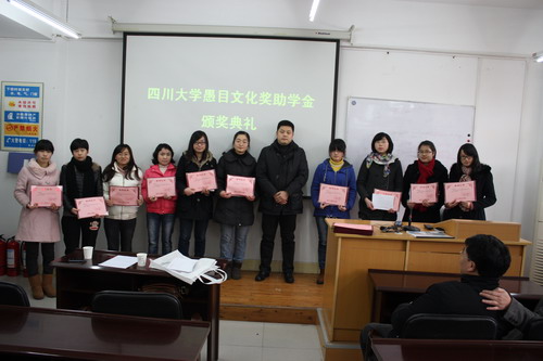 愚目文化奖助学金颁发仪式在食品工程系纺工楼202多媒体教室顺利举行,参加颁发仪式的有成都愚目文化传播公司周志明总经理,轻纺与食品学院副院长、食品工程系系主任何强教授,院党委副书记刘晓虎副教授,团委书记苏德强老师,2010级辅导员段飞霞老师,食品工程系邹华雄老师以及食品科学与工程专业全体获奖学生。颁奖典礼由院党委副书记刘晓虎主持。