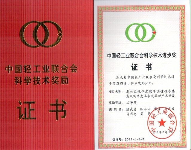 和西藏自治区拉萨皮革厂完成的项目“高效益牦牛皮制革关键技术集成及牦牛皮革和裘革新产品开发”因促进社会经济发展而荣获中国轻工业联合会科学技术进步三等奖。获奖者:陈武勇,陈小云,张涛,马成义,肖烈忠,龚英。