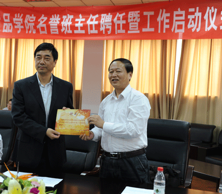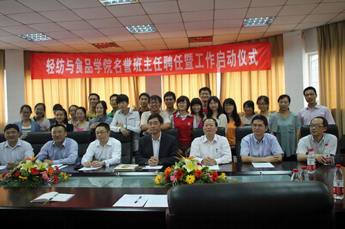 党委副书记李向成教授、校党委学生工作部部长郭勇教授、轻纺与食品学院赵毅书记、何有节院长、刘晓虎副书记、兰建武副院长、何强副院长、肖凯副院长以及学院两办、学生工作组等教师及2011级食品科学与工程专业7班全体学生出席启动仪式,启动仪式由院党委副书记刘晓虎副教授主持。。在启动仪式上,学院党委赵毅书记首先代表学院对李向成副书记担任我院名誉班主任表示热烈欢迎,简要介绍了我院学生工作的特点和当前存在的主要困难,期待通过名誉班主任制度的实施,进一步加强我院学生的学业及人生规划,增强学生对专业和行业的认同感;何有节院长代表学院为李向成副书记颁发了名誉班主任聘书;2011级食品科学与工程专业7班班长代表同学发言并逐一介绍了班级的每一个成员,该班团支书向李向成副书记赠送了由班级所有成员亲手制作的班级纪念册;随后郭勇部长在发言中表示深受场面感染,提出了自己对“大学”的理解,并就大学氛围、精神和方向发表了自己的看法,希望同学们在营造氛围、培养精神、确立方向等方面继续努力,通过大学学习不断丰富知识结构、提升人格品质以报孝父母、回报社会。李向成副书记随后作了重要讲话,深情表达了对接到轻纺与食品学院名誉班主任聘书和同学赠送纪念册之后的真挚情感,表示非常荣幸以名誉班主任的身份加入到2011级食品科学与工程专业7班大家庭,认为这不仅是一份期盼、重托,更是一份责任;客气表达了愿意以朋辈的身份指引同学们走好人生之路,通过进一步增进自信,不断提升对校、院的认同感和自豪感;并提出真诚希望与每位同学及其家长分享成功与喜悦,分担苦恼与困惑,共同努力取得新的、更大的收获。仪式结束后,李向成副书记作为名誉班主任随即与2011级食品科学与工程班全体同学展开了第一次交流活动。他与同学们围坐在一起,热心了解班上每位同学的家庭情况、兴趣爱好以及学习生活等各方面情况,并认真听取了同学们对学校改革发展的意见和建议;结合自己的学习和工作经历,就大家关心的就业、考研和出国,以及如何适应大学生活等问题为同学做了讲解,与同学面对面深入交流,现场气氛轻松和谐,各位同学积极发言。交流活动结束后,同学们纷纷表示,大家通过与名誉班主任李向成副书记沟通交流,受益匪浅。名誉班主任计划,充分体现了学校对同学们的关心,同学们对大学生活学习和未来发展有了更高层次的认识,增强了学习的动力与信心。名誉班主任计划的开展,进一步拉近了教师与同学之间的距离,加深了教师与同学之间的感情,为同学解决学习、思想和生活上的困难与疑惑提供了一个新的平台。同时,也对加强校风学风建设、贯彻落实学校校园文化建设年“抓五风、促四力”工作目标有着积极和深远的意义。