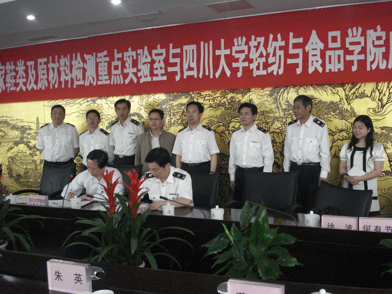 轻纺与食品学院何有节副院长代表合作双方签署了备忘录。双方本着互惠互利、优势互补的原则,同意在建立检学合作机制、科研合作、技术培训以及技术交流等方面开展全面的合作。 四川省出入境检验检疫局李劲松副局长、四川省出入境检验检疫局检疫检疫办公室邓明辉主任、法规处朱英处长、轻纺处敖必强处长、轻纺处胡世强副处长、四川省出入境检验检疫局检疫检疫技术中心赵蜀军主任、董伟副主任、NT动漫