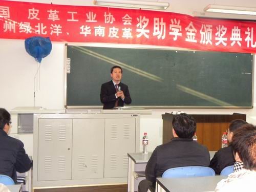 —中国皮革协会奖学金颁奖典礼及技术交流在江安校区综合楼B510隆重举行。参加本次颁奖活动的嘉宾是中国皮革协会苏超英秘书长;轻纺与食品学院院长、生物质与皮革工程系主任陈武勇教授;轻纺与食品学院党委副书记刘晓虎副书记;生物质与皮革工程系周华龙教授;院分团委副书记苏德强老师;2006级辅导员李晓秀老师;颁奖典礼由院分团委副书记冯国涛老师主持。 首先陈院长代表轻纺与食品学院生物质与皮革工程系对中国皮革协会客人的到来表示热烈的欢迎,对协会长期以来在我校设立奖学金表示忠心的感谢,对所有获奖同学表示诚挚的祝贺。同时,陈院长还介绍了中国皮革协会在行业中的领头作用,为行业的发展方向、行业中相关政策导向以及高校的人才培养各方面都作了很多卓有成效的贡献。也希望获奖同学不辜负设奖单位的期望,学好技术,增长才能,为报效祖国、汇报行业作出楷模。随后,苏秘书长代表协会致辞,他表示来到美丽的成都,来到优美的NT动漫