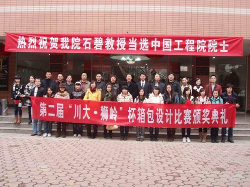 在产学研方面的合作,以进一步提升狮岭皮具之都的品牌形象。接下来,由徐镇长、刘欢容书记、冯金生书记、钟志锋村长、何有节教授、刘晓虎书记一起为本届设计大赛获奖同学颁发荣誉证书。最后,2007级革制品设计方向的张栋同学代表所有获奖同学作了发言,他首先对设奖单位表示感谢,并与同学们一起分享了这次比赛当中自己的心得体会,体现了创作的艰辛过程,更表达了获奖之后的喜悦心情。并表示在以后的学习中,定将倍加努力,不辜负老师、企业的一片期望。 颁奖典礼结束后,徐镇长一行还参观了制革清洁技术国家工程实验室,与川大师生进行了深入的交流与互动。轻纺与食品学院2009年12月9日