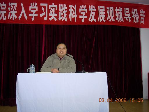 深入学习实践科学发展观活动宣讲团成员唐登学教授作了题为“全面落实科学发展观,努力构建和谐社会”的辅导报告。全院教职工参加,并认真学习领会科学发展观。 辅导报告阐述了科学发展观的提出,根本依据和核心,并详细论述了构建社会主义和谐社会的重要性、指导思想、目标任务和原则,指出构建和谐社会必须坚持以马克思列宁主义、毛泽东思想、邓小平理论和“三个代表”重要思想为指导,坚持党的基本路线、基本纲领、基本经验,坚持以科学发展观统领经济社会发展全局,按照民主法治、公平正义、诚信友爱、充满活力、安定有序、人与自然和谐相处的总要求,以解决人民群众最关心、最直接、最现实的利益问题为重点,着力发展社会事业、促进社会公平正义、建设和谐文化、完善社会管理、增强社会创造力,走共同富裕道路,推动社会建设与经济、政治建设、文化建设协调发展。 辅导报告取得了良好的效果,为全院教职工进一步深入学习实践科学发展观,促进学院的发展,指明了方向。