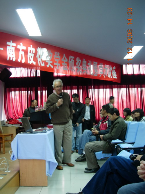 2008年12月11日下午14:00,斯特尔—南方皮化奖助学金颁奖典礼及学术讲座皮革楼二楼报告厅隆重举行。参加本次颁奖典礼的嘉宾有Stahl公司欧洲总部涂饰部门经理Peter教授;Stahl公司亚洲水场及染粉部技术经理李教授;Stahl公司华南区涂饰部销售经理谭子夜先生;Stahl公司涂饰部技术、98级皮革系校友涂刚先生;以及生物质与皮革工程系副系主任张宗才教授,王坤余教授。 颁奖典礼在一片欢呼声中举行,Peter教授首先致辞,表示了对获奖同学的祝贺,并希望他们再接再励,争取更加优异的成绩。接下来Stahl公司为我们进行了长达4小时的学术讲座,现场座无虚席,同学们踊跃提问,让讲座气愤相当热烈。讲座分为两个部分进行,首先是由Peter教授为同学们作喷涂方面的知识讲座,1个小时的讲解结束后,还带领同学们到资料室现场参加、亲自感受了由Stahl公司专门从欧洲带过来的100多张皮革样品,各种风格、不同种类的皮革样品让同学们眼花缭乱,也深深体会到了皮革喷涂的艺术性与高雅性。接下来由李教授为同学们做了水场方面的讲座,李教授深入浅出,讲解细致,让同学们对水场的操作有了全面的了解与更深的体会。讲座结束以后,Stahl公司还为参会同学赠送了精美的礼品。本次学术讲座的成功举办,相信让同学们大开眼界,对书本的理论知识有了更深的理解,也对皮革行业多了一份热忱与期待。轻纺与食品学院2008年12月12日
