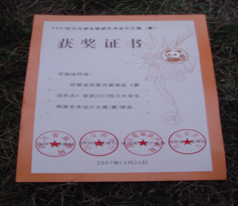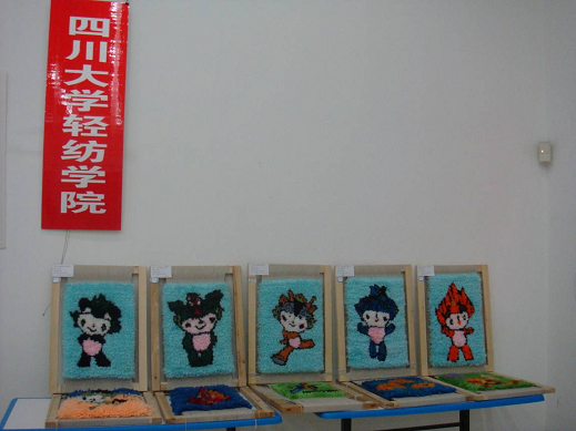 热烈祝贺我院05级纺织工程专业同学得奖归来 2007年11月,我院05级纺织工程专业同学在赵敏老师的指导下,携纯手工编织的挂毯参加了由四川省旅游局、四川省教育厅、四川省知识产权局及四川省旅游协会联合主办的“2007四川旅游纪念品设计大展暨NT动漫