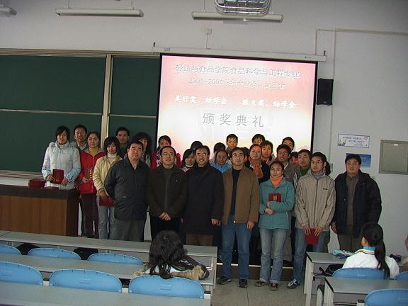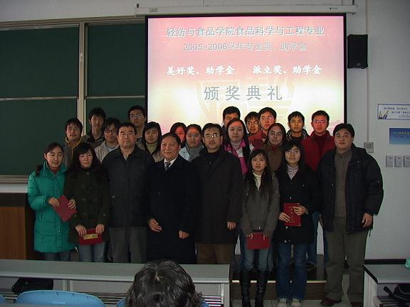 2007年1月11日下午3点整,我院食品工程系专业奖学金颁奖典礼在江安校区综合楼C505隆重举行,此次颁奖的奖项有美好奖学金,美好助学金,派立奖学金和派立助学金四个奖项,总共有50余名硕士生和本科生获得了不同的奖项。参加此次颁奖典礼的有轻纺与食品学院卢晓黎副院长、刘晓虎副书记、张文学副系主任、成都美好食品有限公司和成都派立食品有限公司的领导、学生工作组和食品工程系的部分老师,以及食品工程系200余名硕士生和本科生。