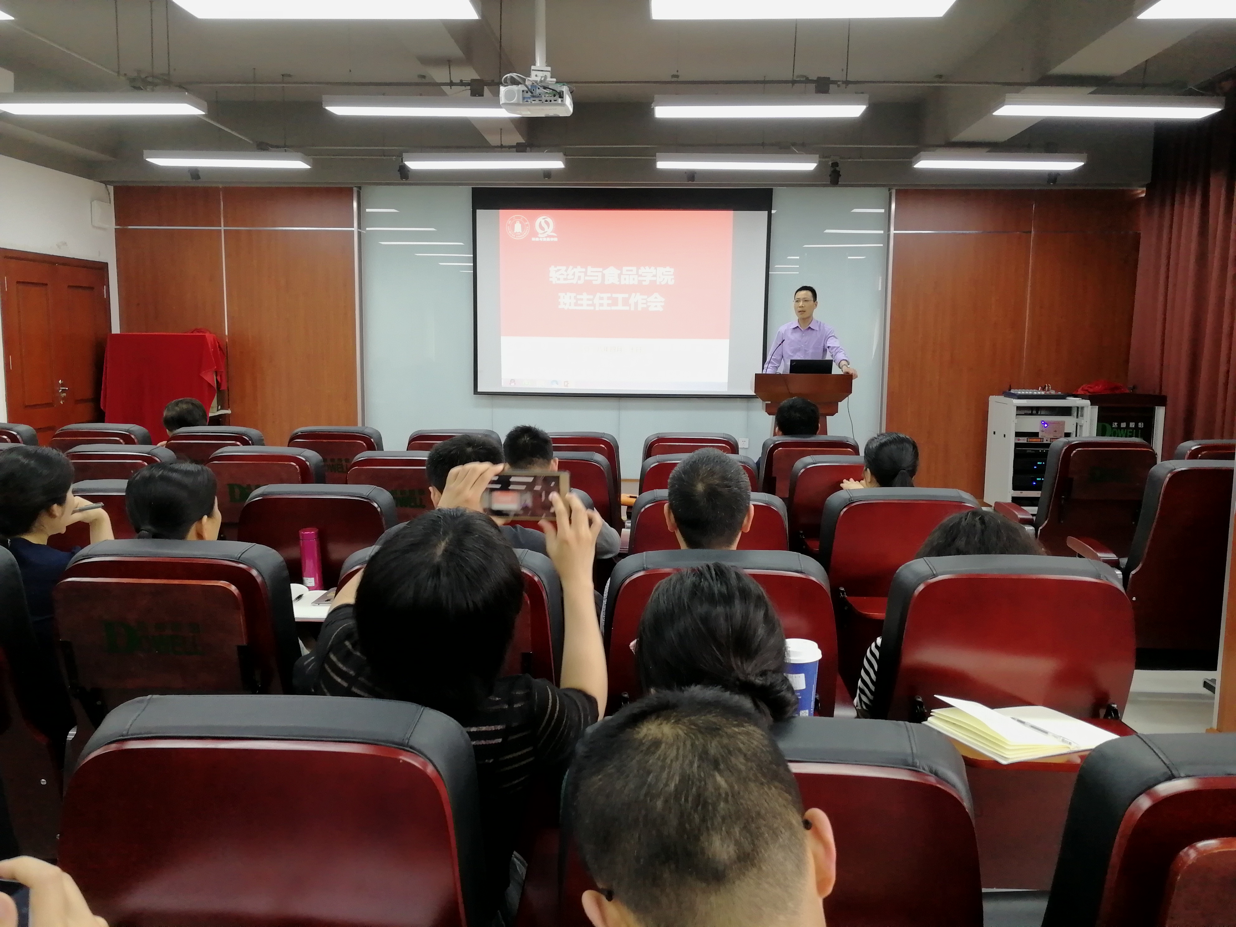 最后,作为班主任代表,何有节院长就自己担任班主任以来所开展工作情况向大家介绍了自己的体会和建议。何院长首先强调“班主任-学院-专业-辅导员”联动机制的重要性,这是学校多位一体、全员育人的重要举措,也是以学生为中心开展工作的具体形式;同时,何院长非常关注班主任与学生交流在“量”、“质”、“内容”、“形式”四方面的有机统一,分享了自己自从担任学分制指导教师、到班主任多年以来积累的工作经验,希望每位班主任老师都积极主动开展工作,为轻纺学院人才培养提供坚强的组织保障。