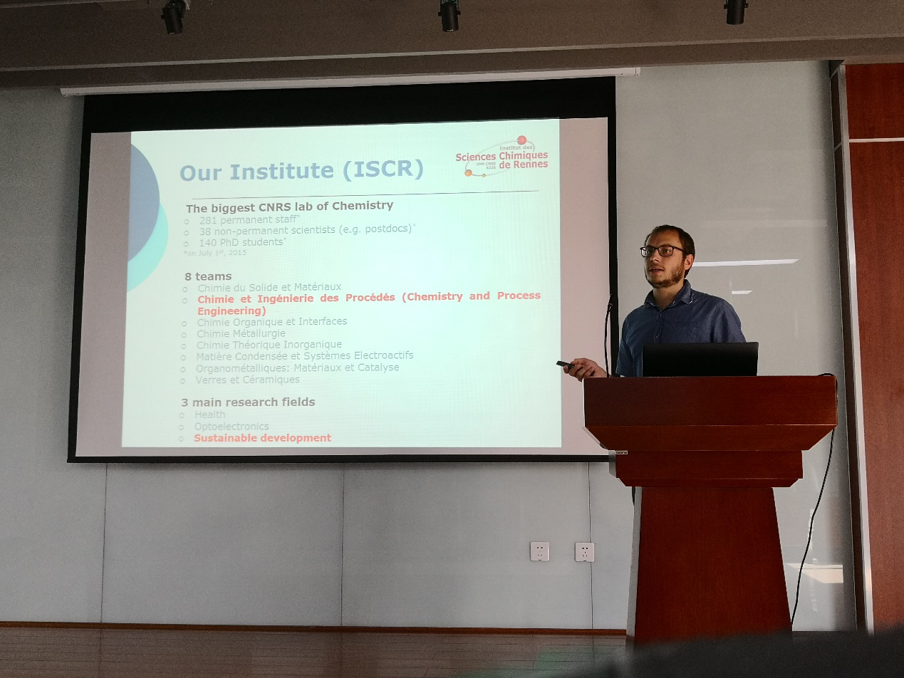 轻纺与食品学院,并在皮革系金垚副教授的主持下作了题为“Membrane distillation for sustainable production”的学术报告。这也是自今年5月开讲的“生物质科学与工程论坛”系列报告之一,该论坛的负责人杨璐铭老师特为Patrick Loulergue副教授颁发了相应证书。