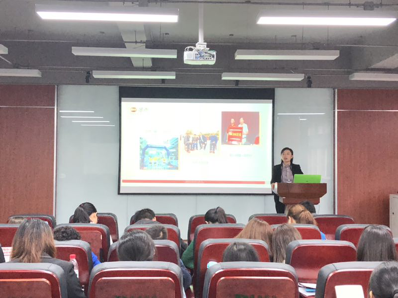 研发部主管曾建英女士以自己在圣恩的多年工作经历为同学讲解了研发工作内容和发展前景,希望同学们踏出校园后能选择好自己的第一份工作,为未来的发展打好坚实的基础�