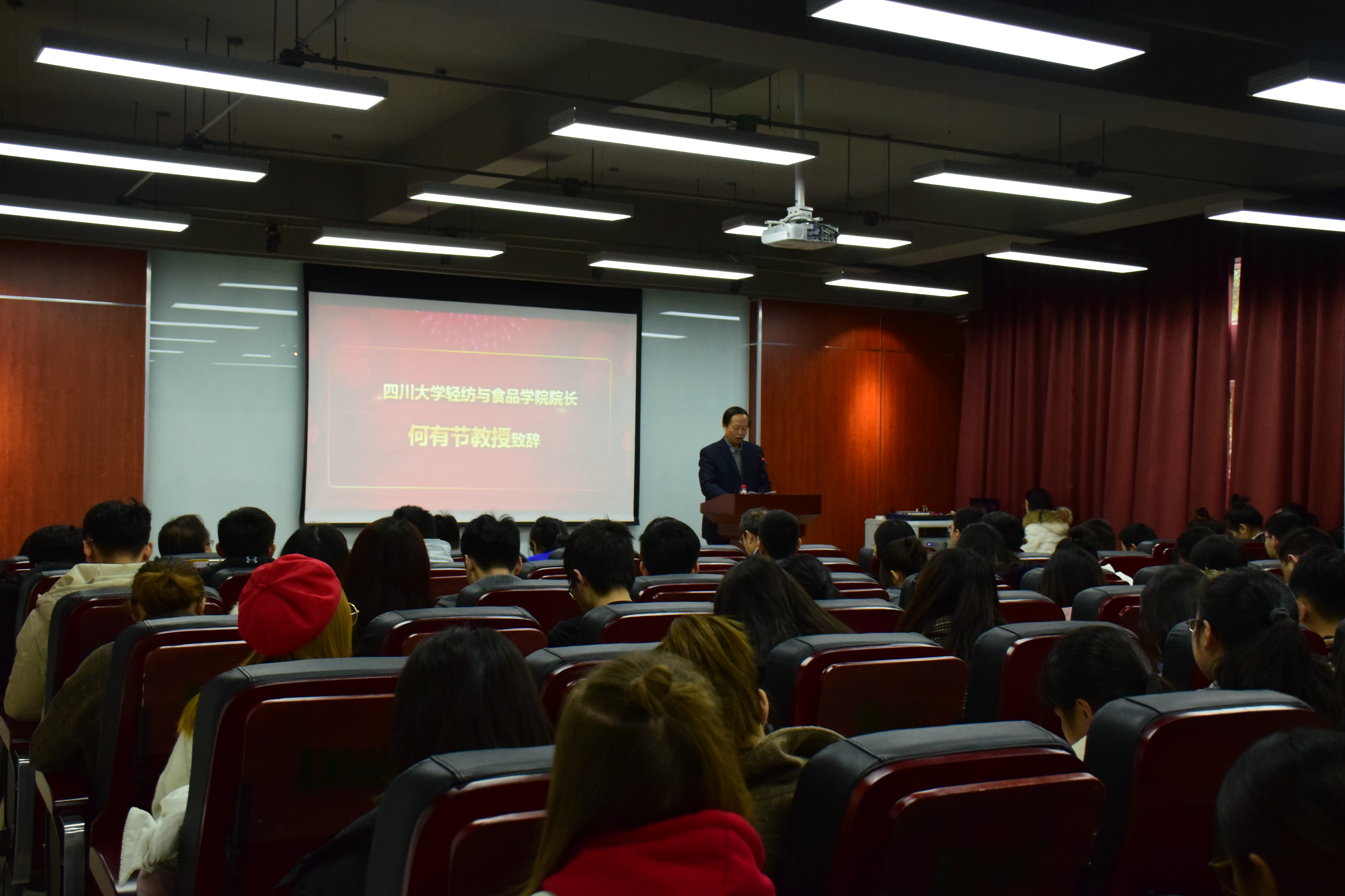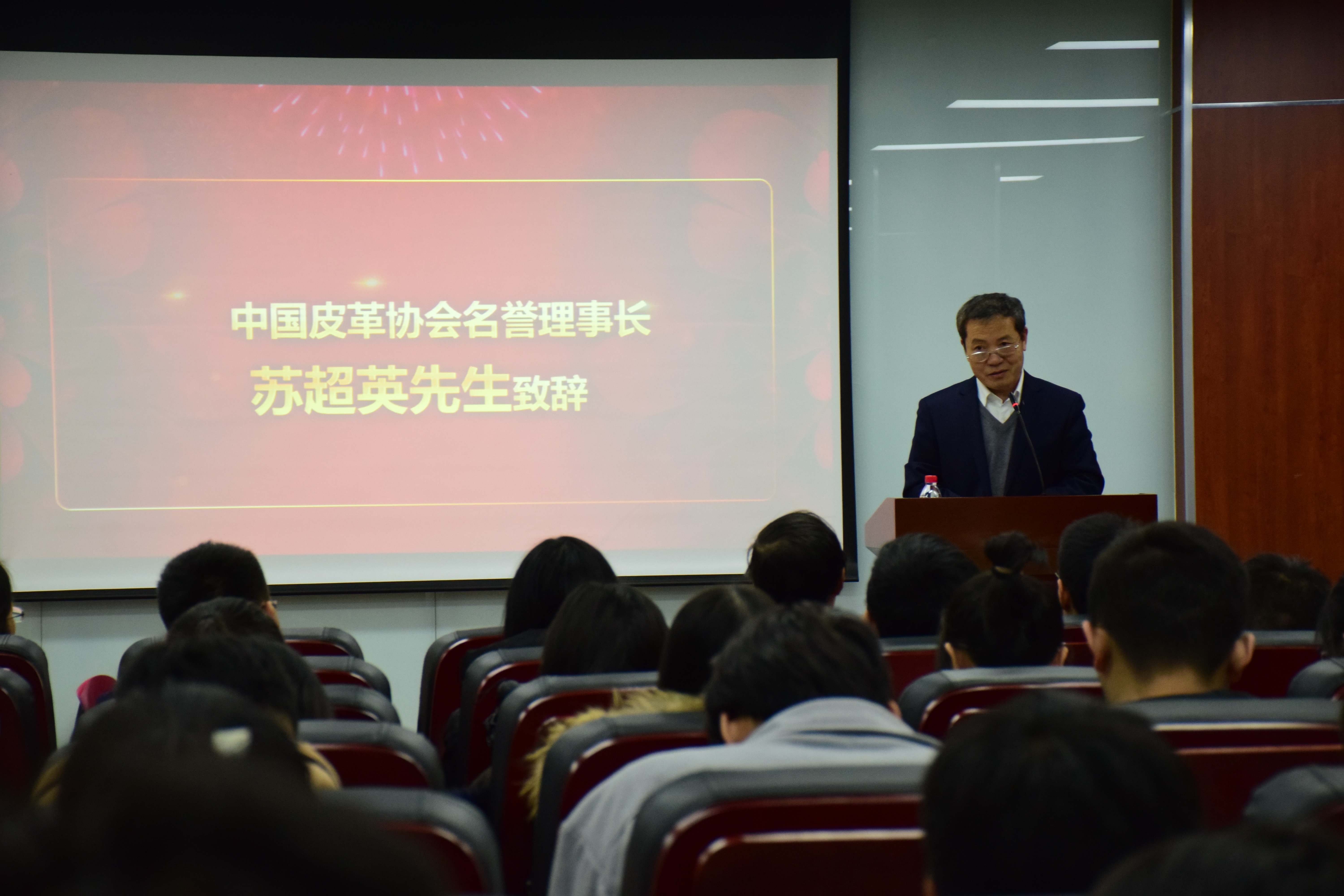 2018�12�7日,中国皮革协会奖学金、斯塔尔奖学金、广州美多绿奖学金、欣驰奖助学金、广东皮革校友会热爱专业奖学金颁奖典礼在望江校区皮革楼报告厅隆重举行。受四川大学生物质与皮革工程系的邀请,中国皮革协会名誉理事长苏超英先生、斯塔尔广州技术服务中心经理、斯塔尔学院中国区负责人李艳女士、广州欣驰皮革有限公司经理何正嶽先生、广州欣驰皮革有限公司总经理助理刘思敏先生参加了本次活动。出席本次颁奖典礼的学院领导有轻纺与食品学院院长何有节教授、轻纺与食品学院党委副书记冯国涛老师、生物质与皮革工程系系主任林炜教授、生物质与皮革工程系革制品教研室主任徐波老师、制革教研室主任但年华副教授以及学院学生工作组老师。生物质与皮革工程系全体获奖学生参加了本次典礼�