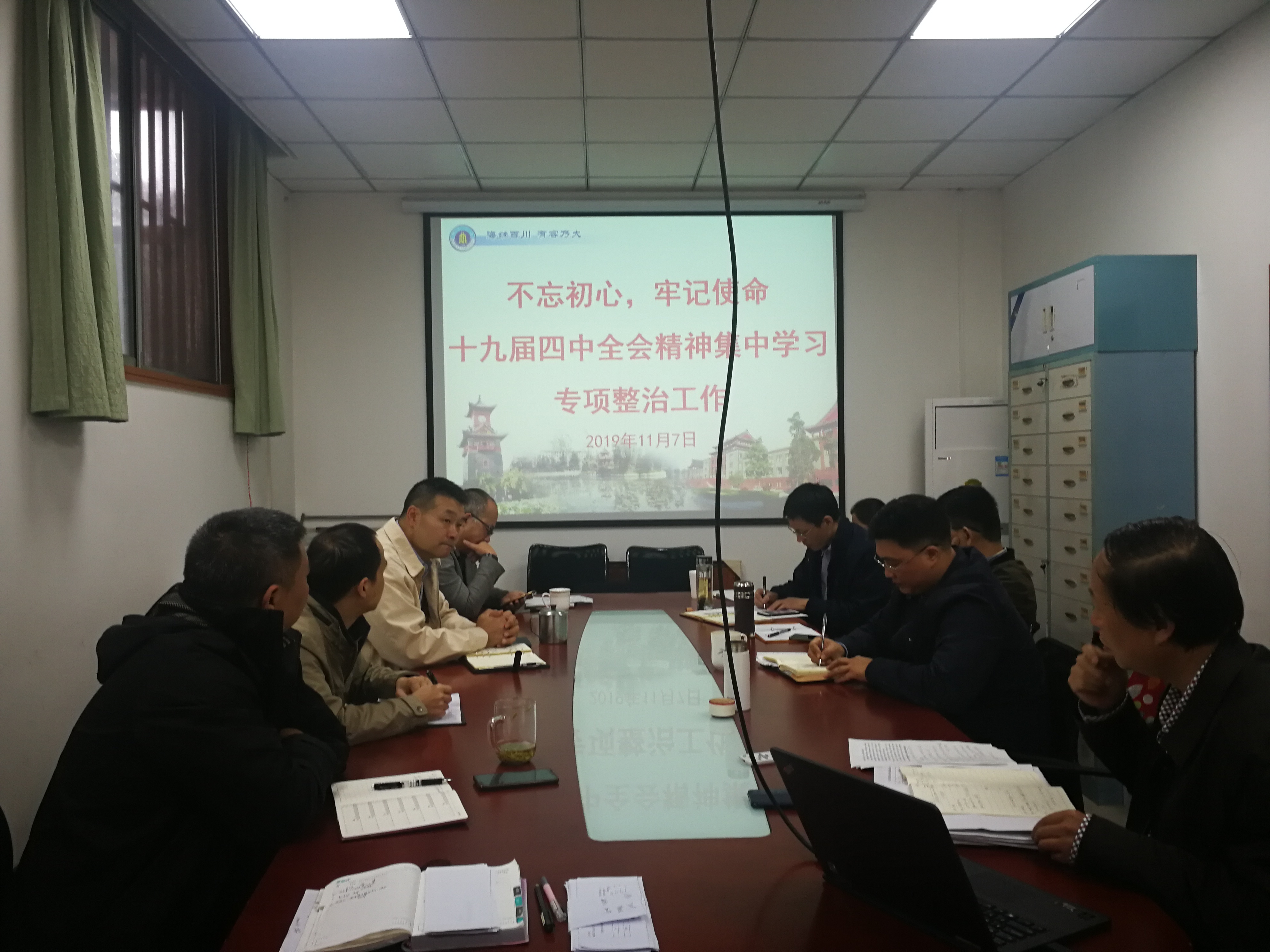 2019年11月4日、11月7日,我院在纺工附楼201会议室召开十九届四中全会精神学习。学院领导班子成员、教职工党支部书记参加了本次集中学习。对十九届四中全会精神中坚持党的领导、坚持社会主义制度、制度保障、治理方略等方面进行了重点学习。下一步,还要组织全院师生对十九届四中全会精神进行学习研读。