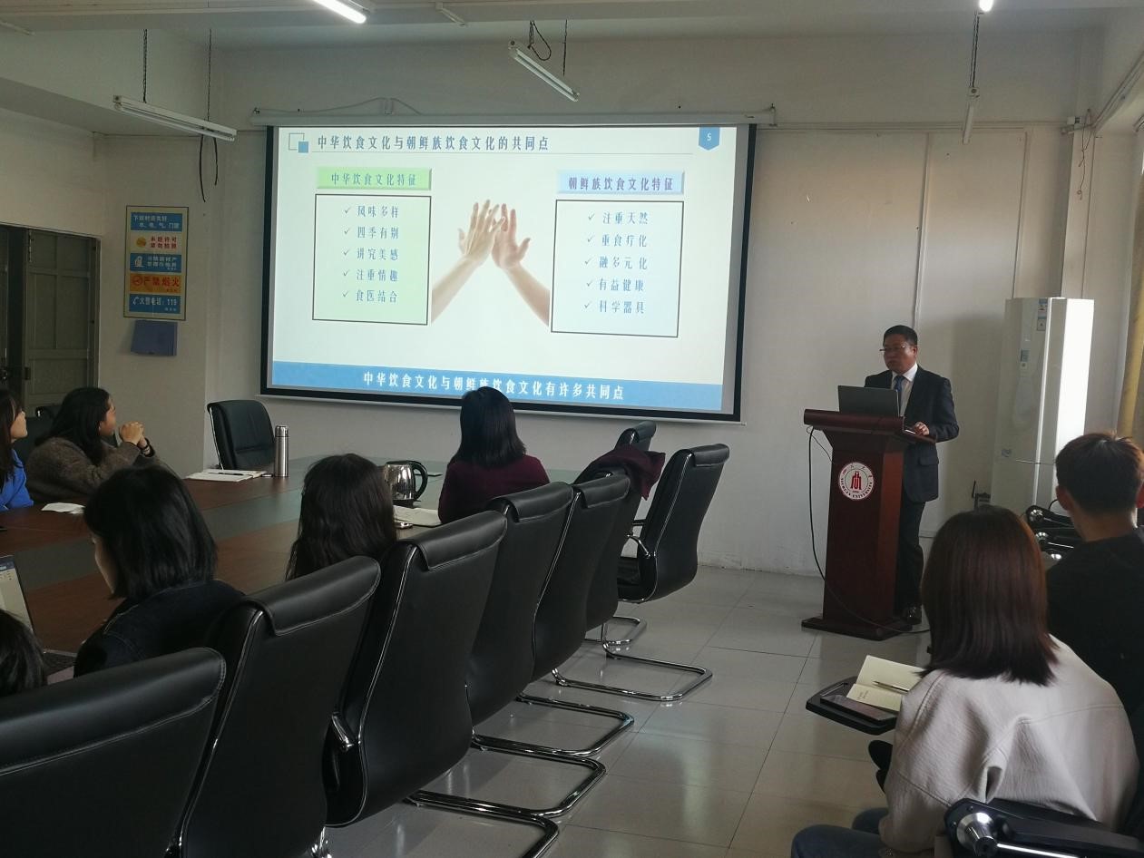食品工程系邀请,延边大学长白山生物资源与功能分子教育部重点实验室保健食品方向负责人、吉林省朝鲜族食品产业公共技术研发中心主任、中国食品科学技术学会理事、中国原子能农学会常务理事崔承弼教授莅临我院开展学术讲座,此次学术报告主题为“朝鲜族食品的功能性研究”,由食品工程系副系主任贾利蓉教授主持,学院相关专业老师和同学到场聆听。