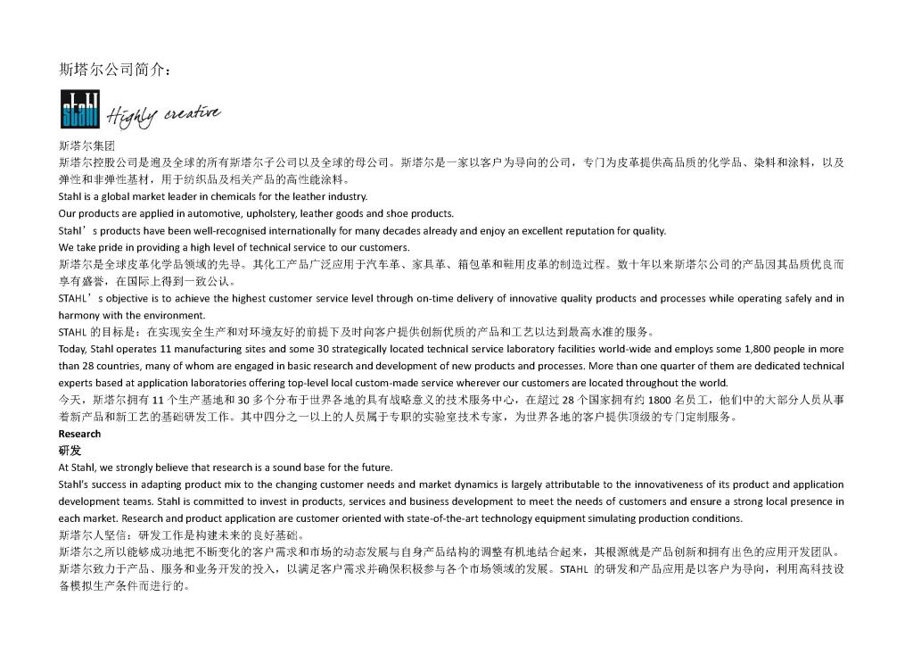 Stahl公司斯塔尔学院全球经理讲座通知