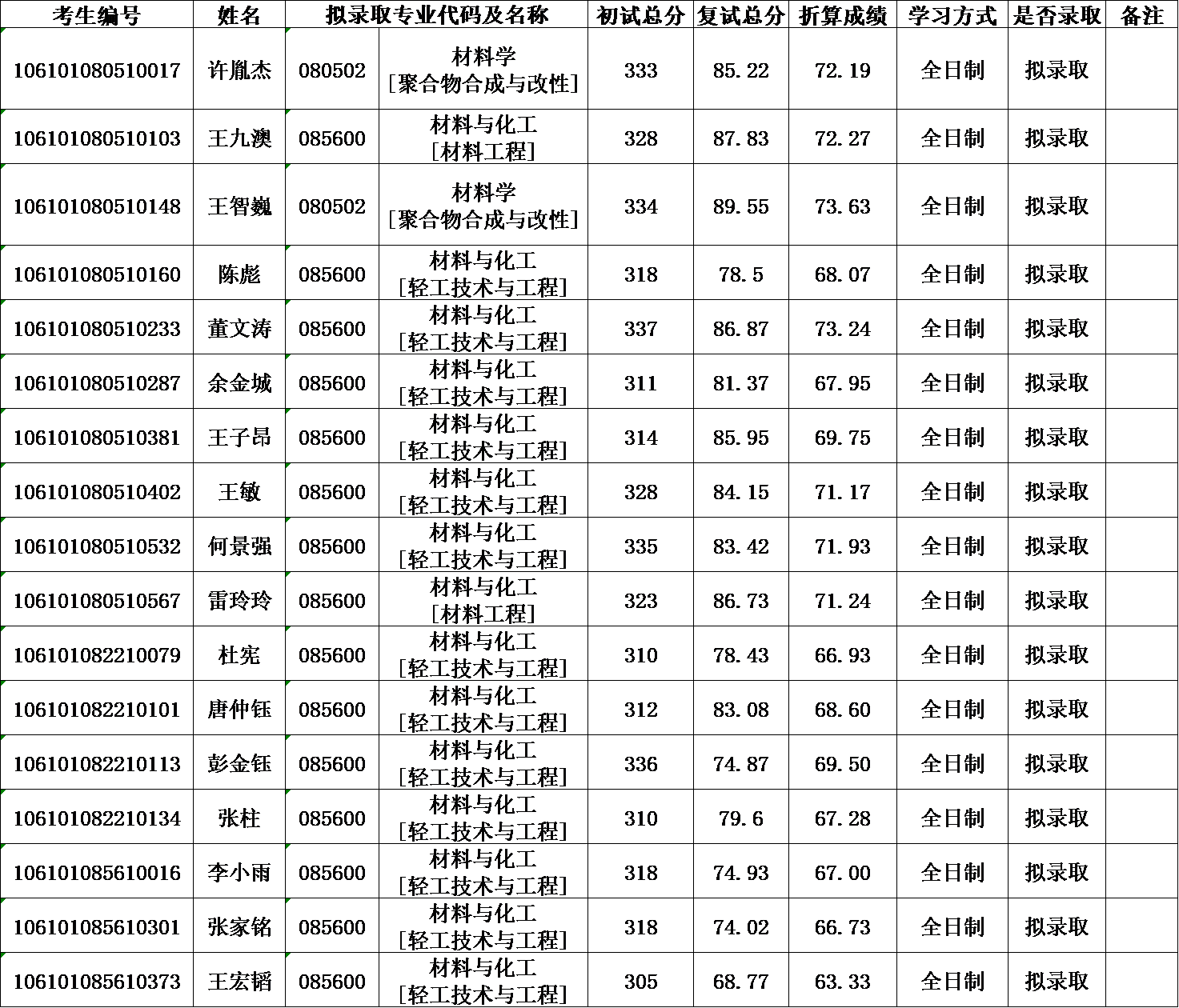 NT动漫 /制革清洁技术国家工程实验室2021年硕士研究生调剂拟录取名单公示