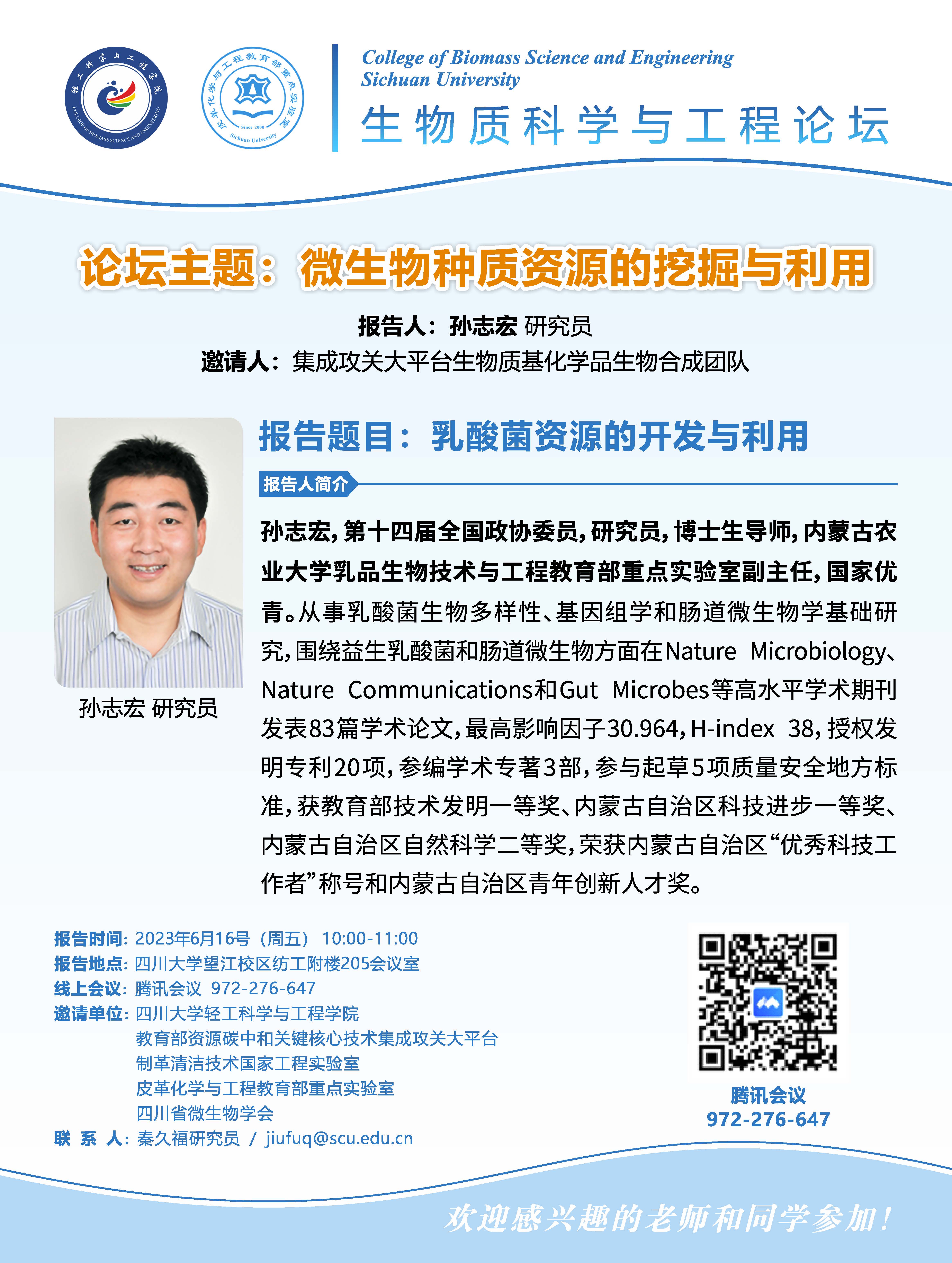 生物质科学与工程论坛:孙志宏研究员 学术报告