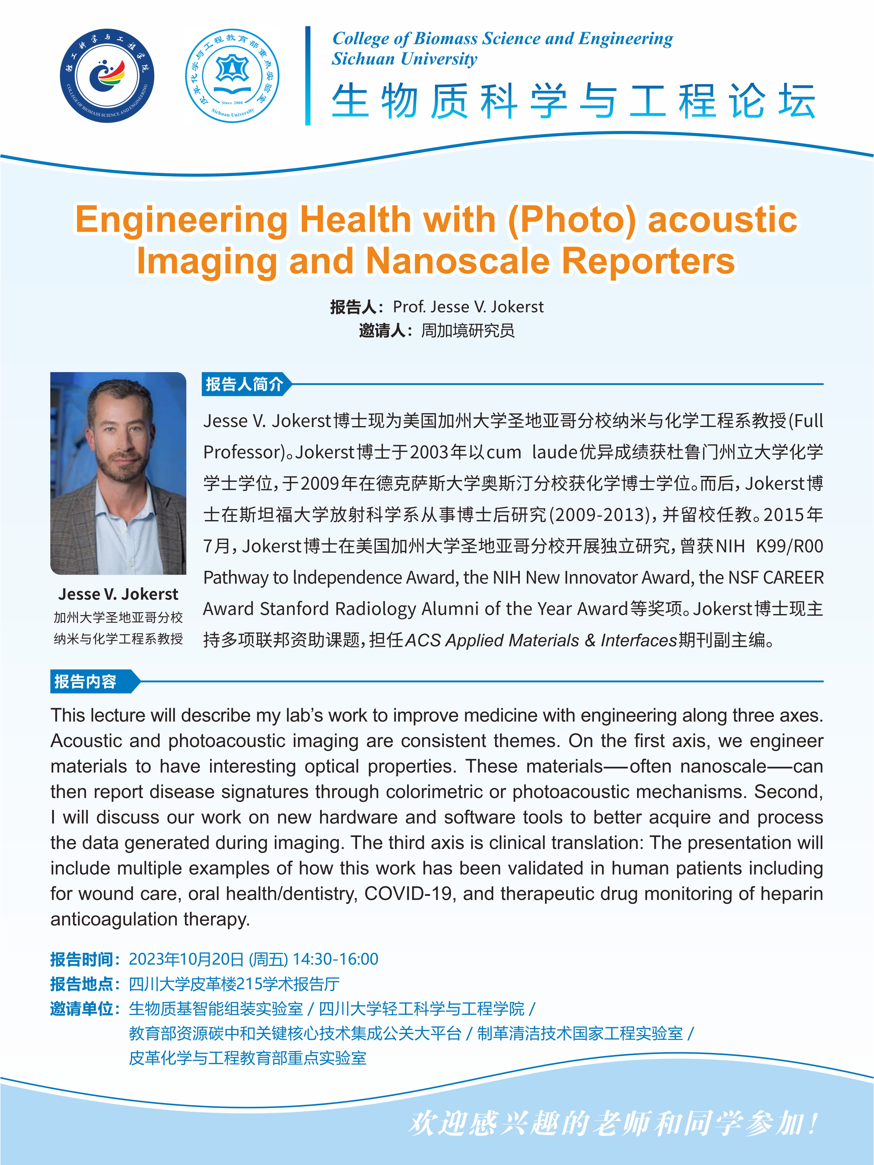 生物质科学与工程论坛:Jesse V.Jokert教授 学术报告