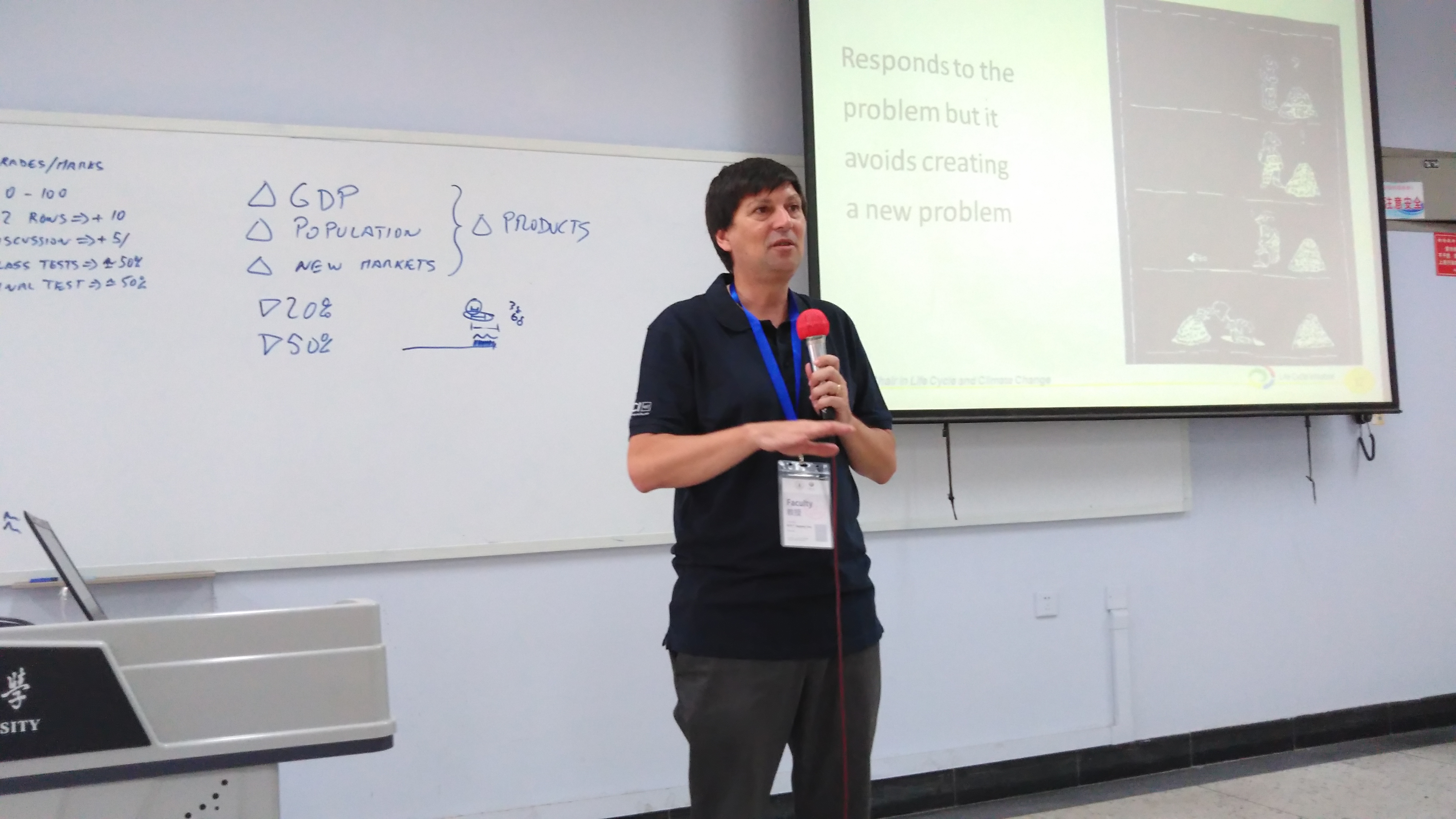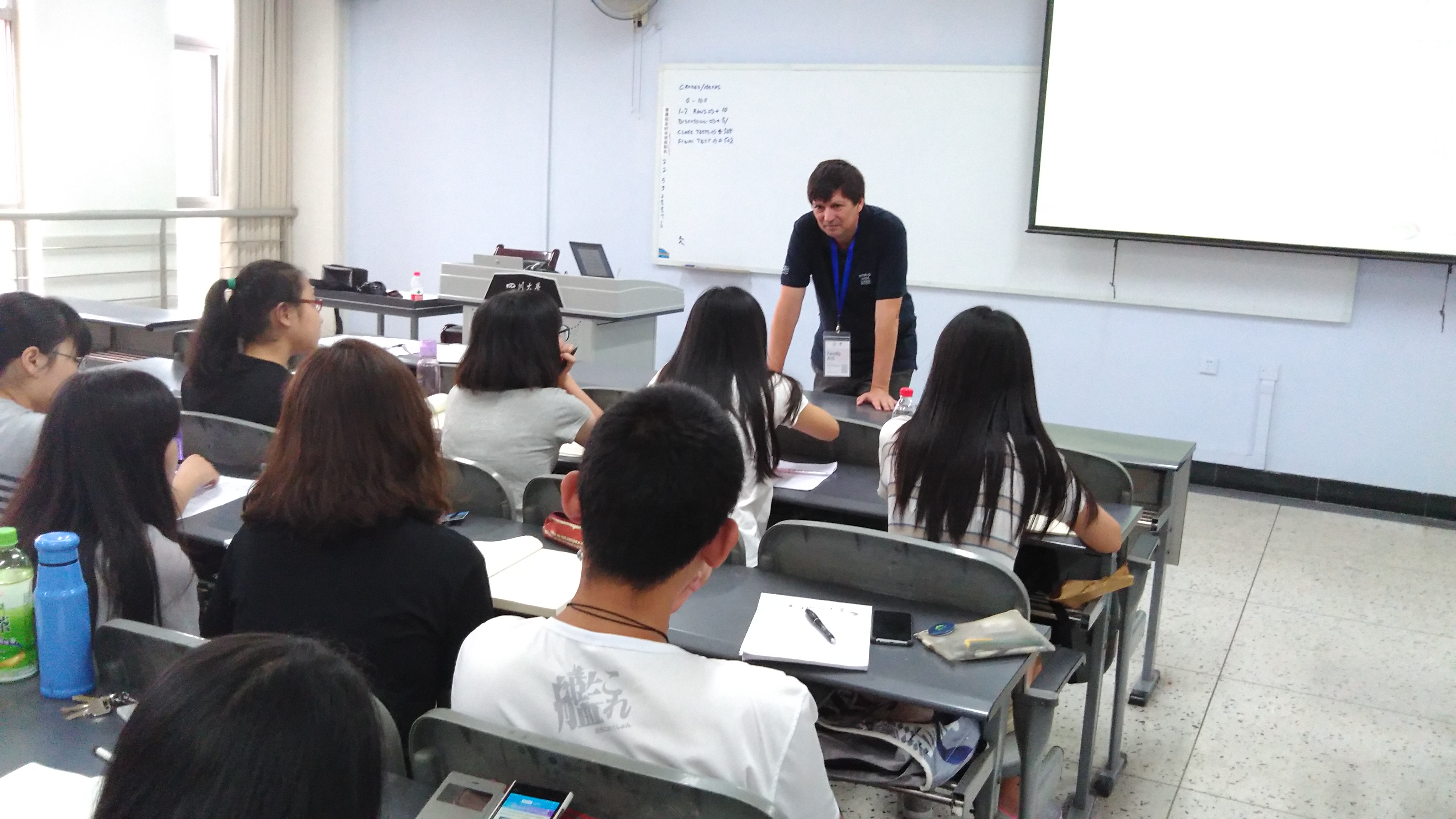 江安校区第一教楼C302,为学生介绍了自己的研究方向和国际实践周课程的主要内容。PERE教授以What is“sustainability”为开端,诙谐幽默的引入了课程主题,以污染物排放为例进行了深入浅出的讲解,并且从“环境”“经济”“社会”多个领域对“sustainability”一词进行了诠释。 在教学过程中,PERE教授采用图文并茂PPT与板书相结合授课方式,并辅以随机发言、分组讨论等多种方法,让大家积极的参与到课程当中。在课程中PERE教授为同学们悉心的讲解课件中出现的专业并对名词和术语以及背后的专业知识。在与同学们的课间交流中,PERE教授以亲和幽默的语言,结合自己多年的教学经验,积极回答每位同学提出各种问题。 据悉,PERE教授此次的课程将持续到两周,在此期间按照他的课程安排,会让同学们了解到国际研究的最新进展,以及自己在相关领域的研究成果,这将进一步扩充同学们的国际视野,让同学们接触到最新的发展趋势。通过这次“实践与国际课程周”活动,我院学生对皮革工业的污染问题有了全新的视角,从不同的切入点对制革行业进行了分析。这不仅扩充学生的专业知识,更加强了我院一流学科和一流专业的建设。
