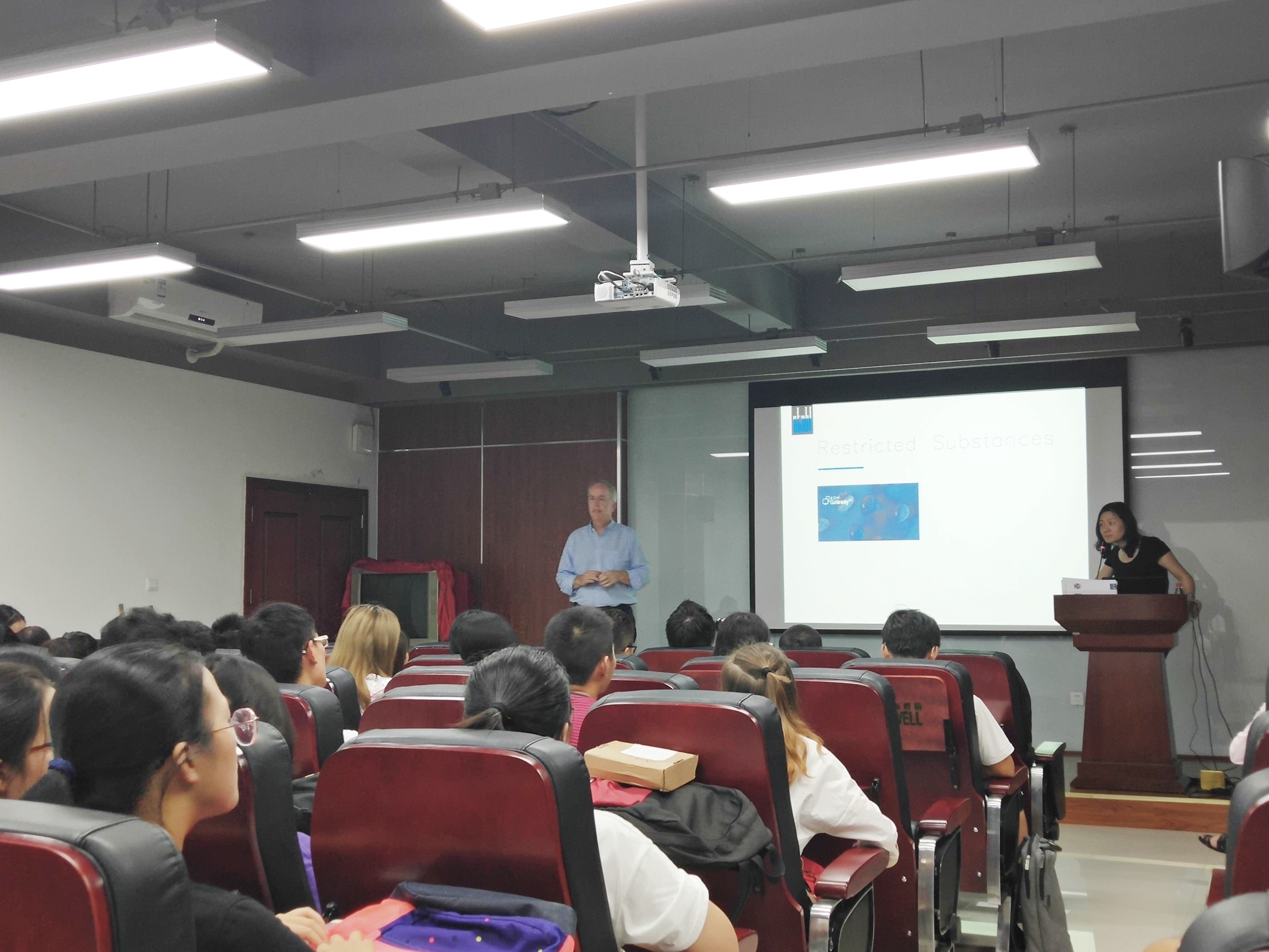 当晚19时30分,讲座顺利开始,首先由何有节院长致欢迎辞。何院长对到场来宾表示了热烈欢迎并对一直以来与我院在学术交流、人才培养上紧密合作的北安普敦大学和斯塔尔公司表达了由衷的感谢。随后来自北安普敦大学的Rachel女士就“皮革教育——对全球工业未来的持续作用”这一主题进行报告,并代表北安普敦大学皮革系对我院学生前去交流深造以及加入其大家庭表示了殷切期待。紧接着斯塔尔公司的Michael先生为学生们对“皮革行业可持续发展的进展”进行了报告,并回答了学生关于皮革行业如何能做到可持续发展以及在急剧变化的环境中如何保证市场的问题。