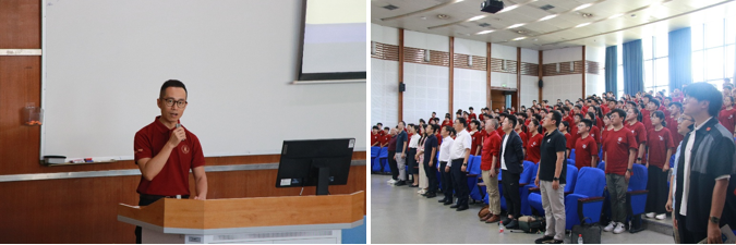 副院长陈意围绕学院学科设置、专业建设、人才培养等方面,向2025级新生进行了全面介绍。他指出,生物质技术与工程专业对接“双碳”目标,契合新质生产力发展需求;学院生物质科学与工程创新班由石碧院士担任名誉班主任,育人成果显著,欢迎同学们积极加入�